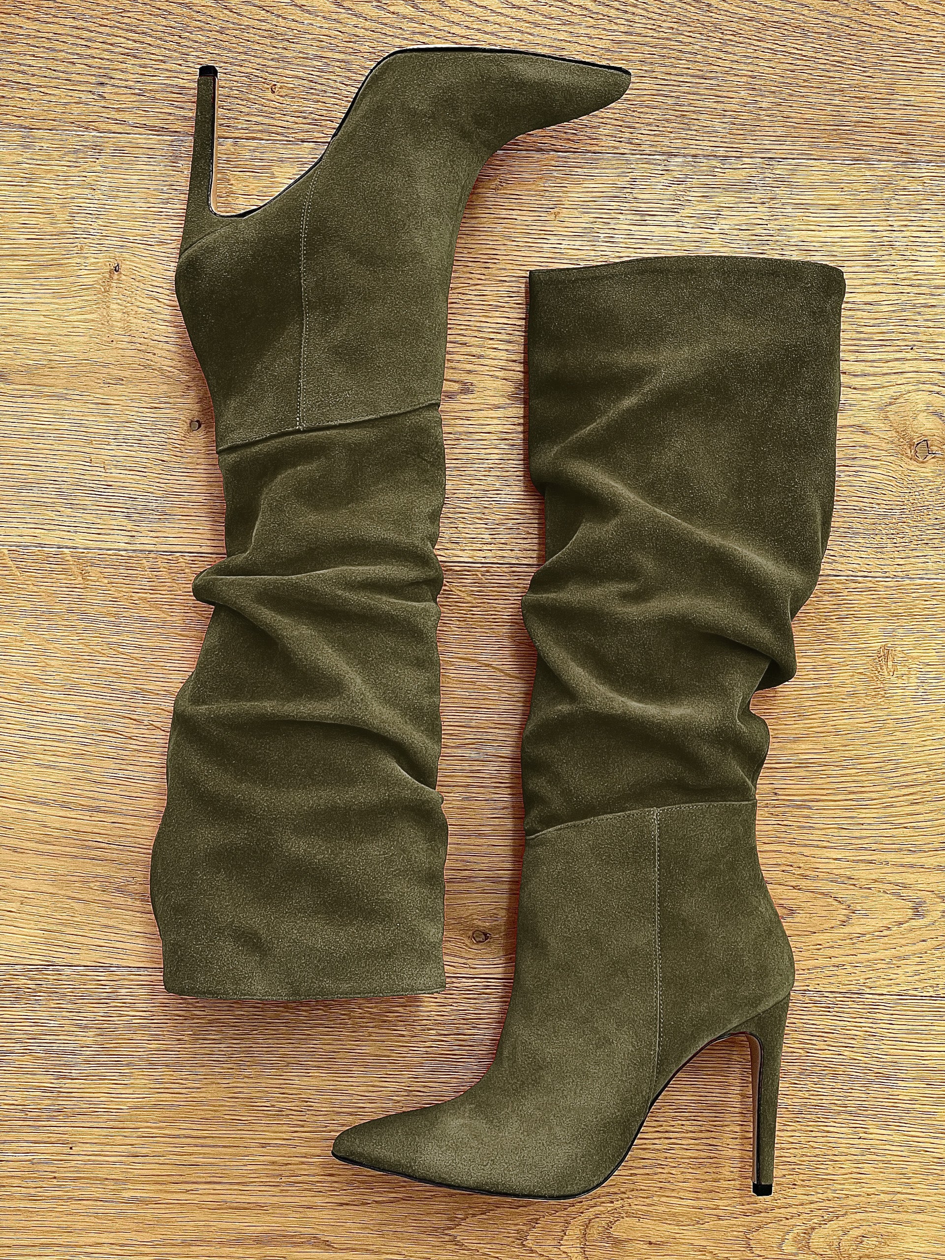Vysoké kozačky s trubkovou špičkou a podpatkem na jehlovém podpatku.