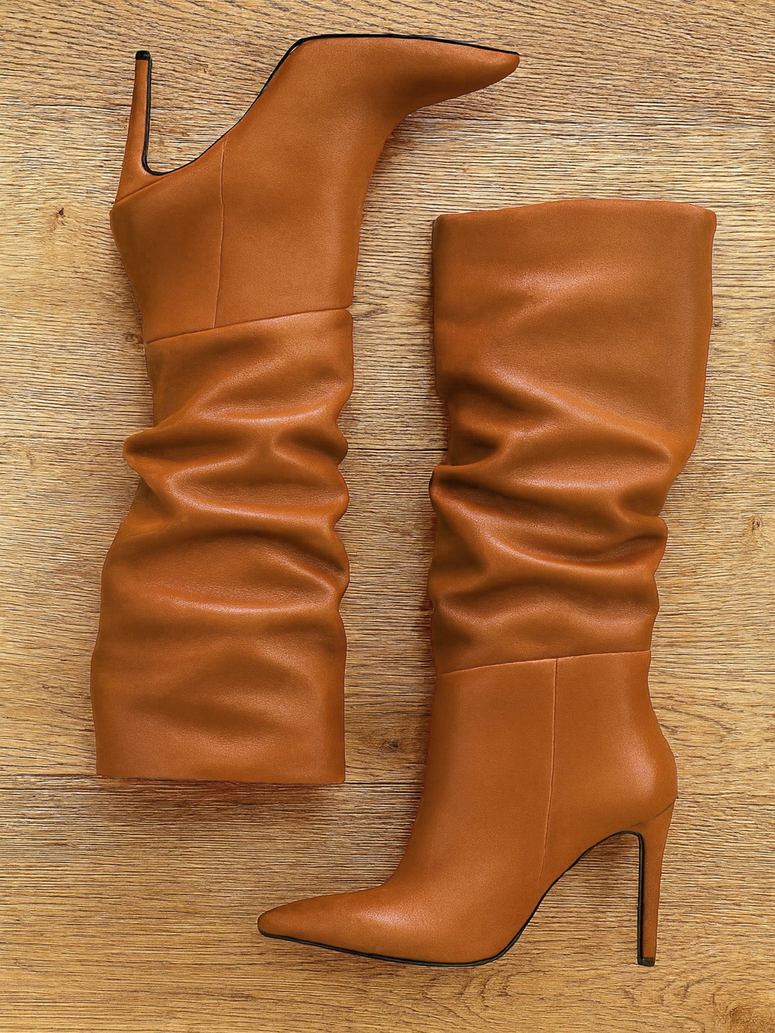Vysoké boty s kaskádovitým trubkovým podpatkem.