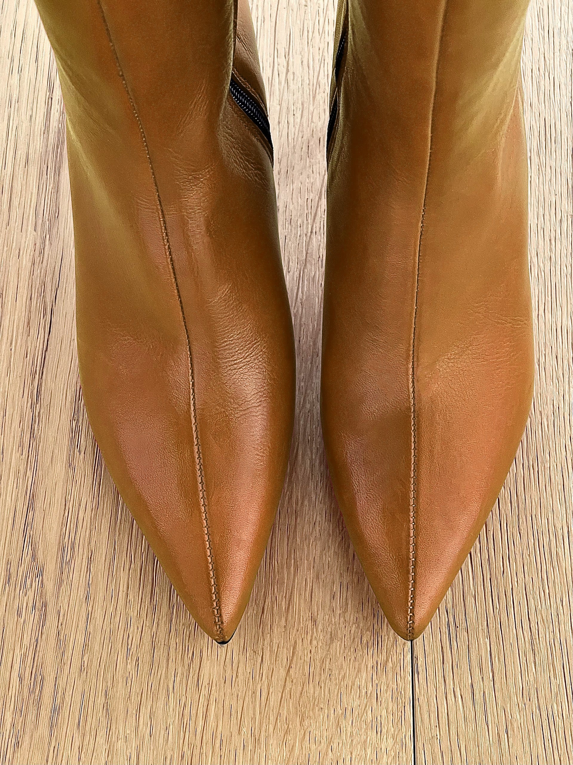 Boty s plochou špičkou a 6cm podpatkem.