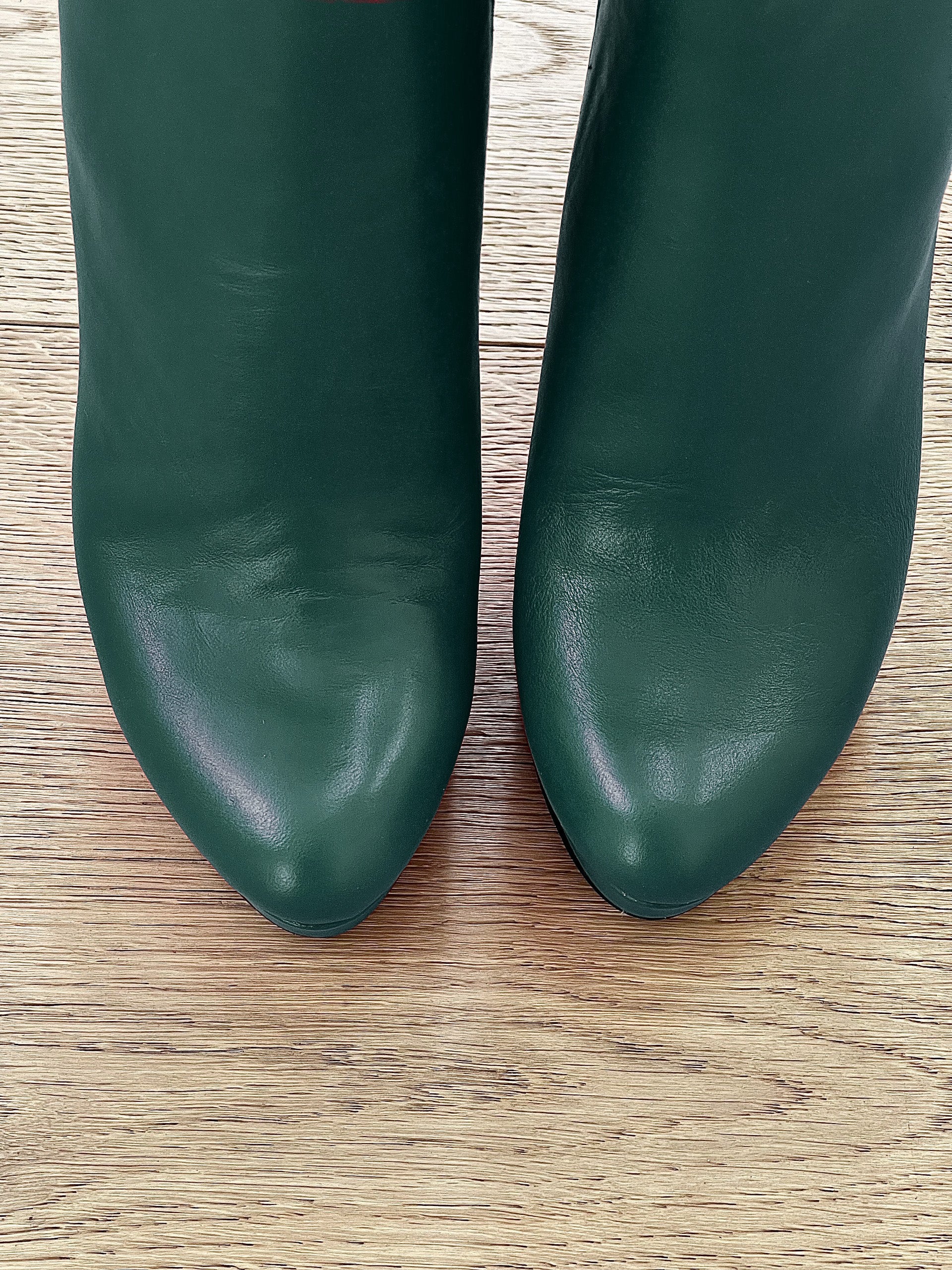 Vysoké kotníkové boty s kulatou špičkou na jehlovém podpatku.