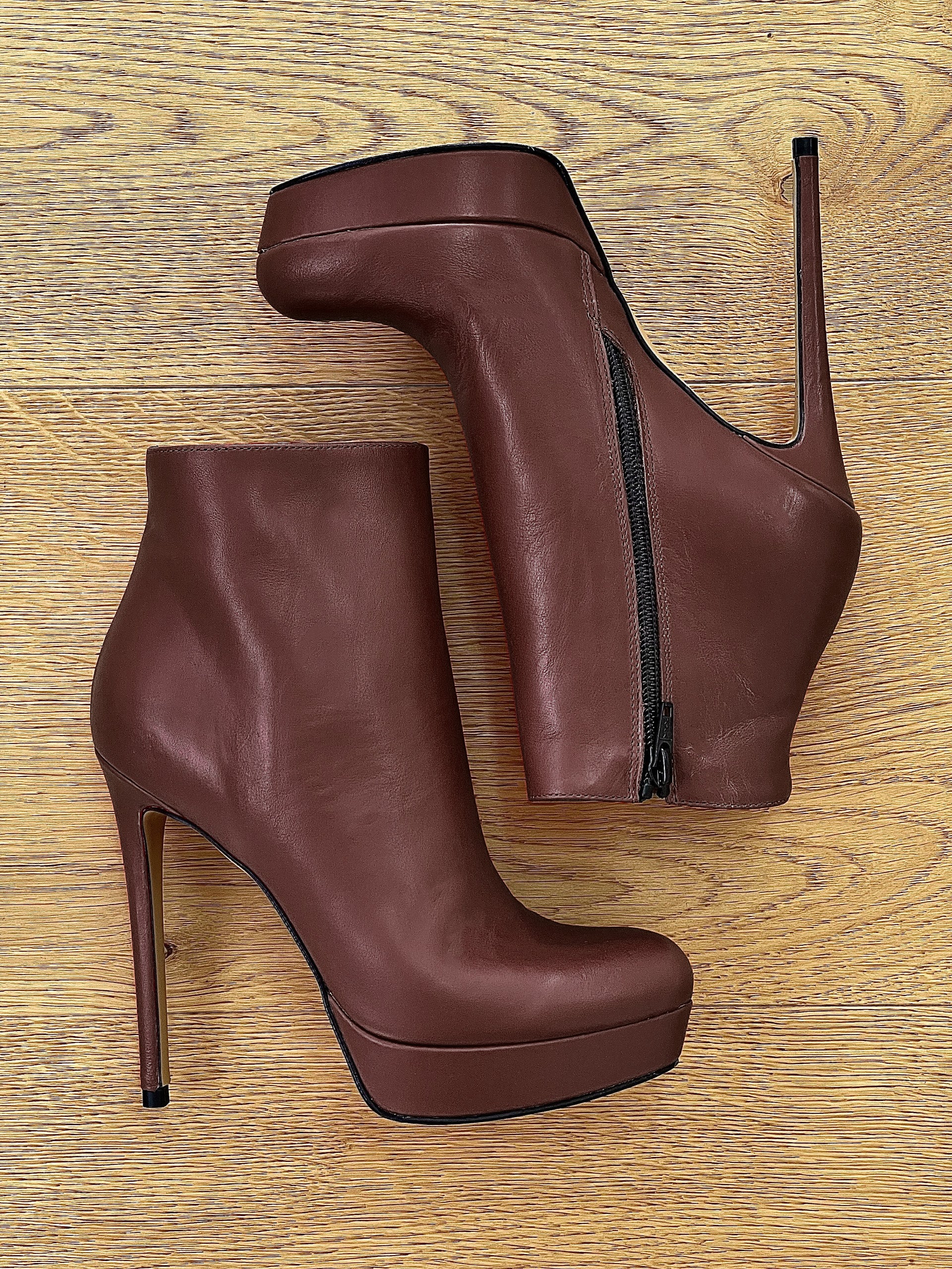 Vysoké kožené kotníkové boty s kulatou špičkou, 12cm podpatkem a 2cm platformou.