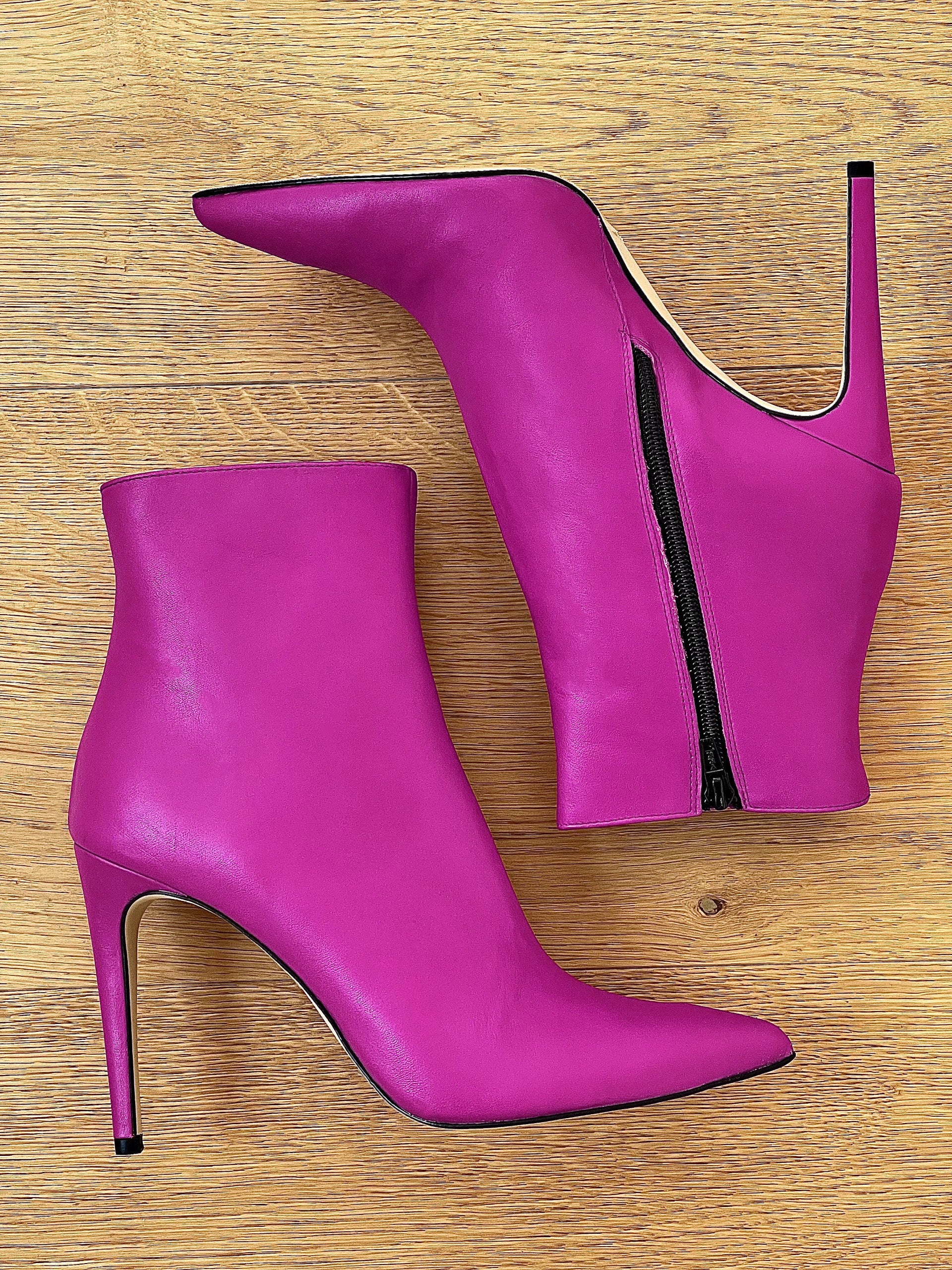 Vysoké kotníkové boty se špičatým koženým 10cm podpatkem.