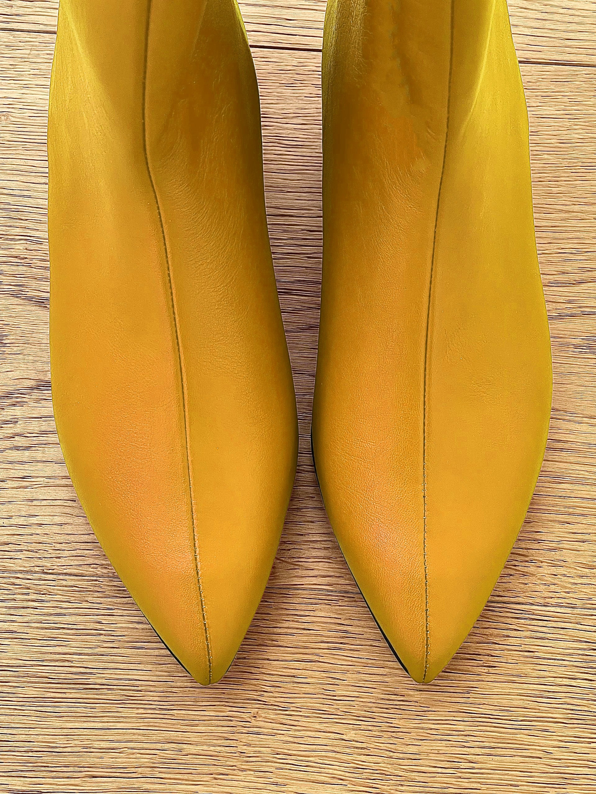 Kotníčková obuv se širokým podpatkem a zadním zipem.