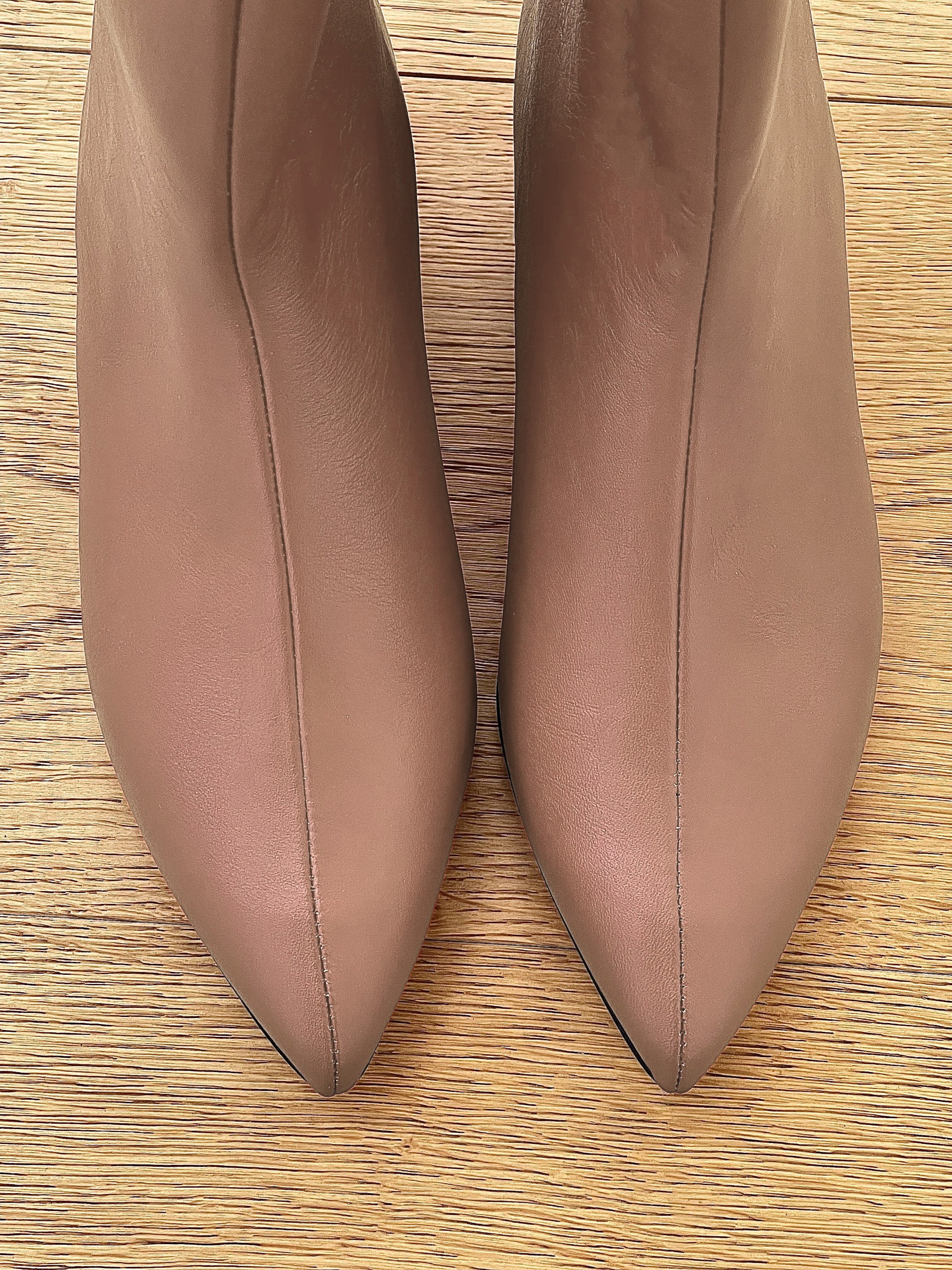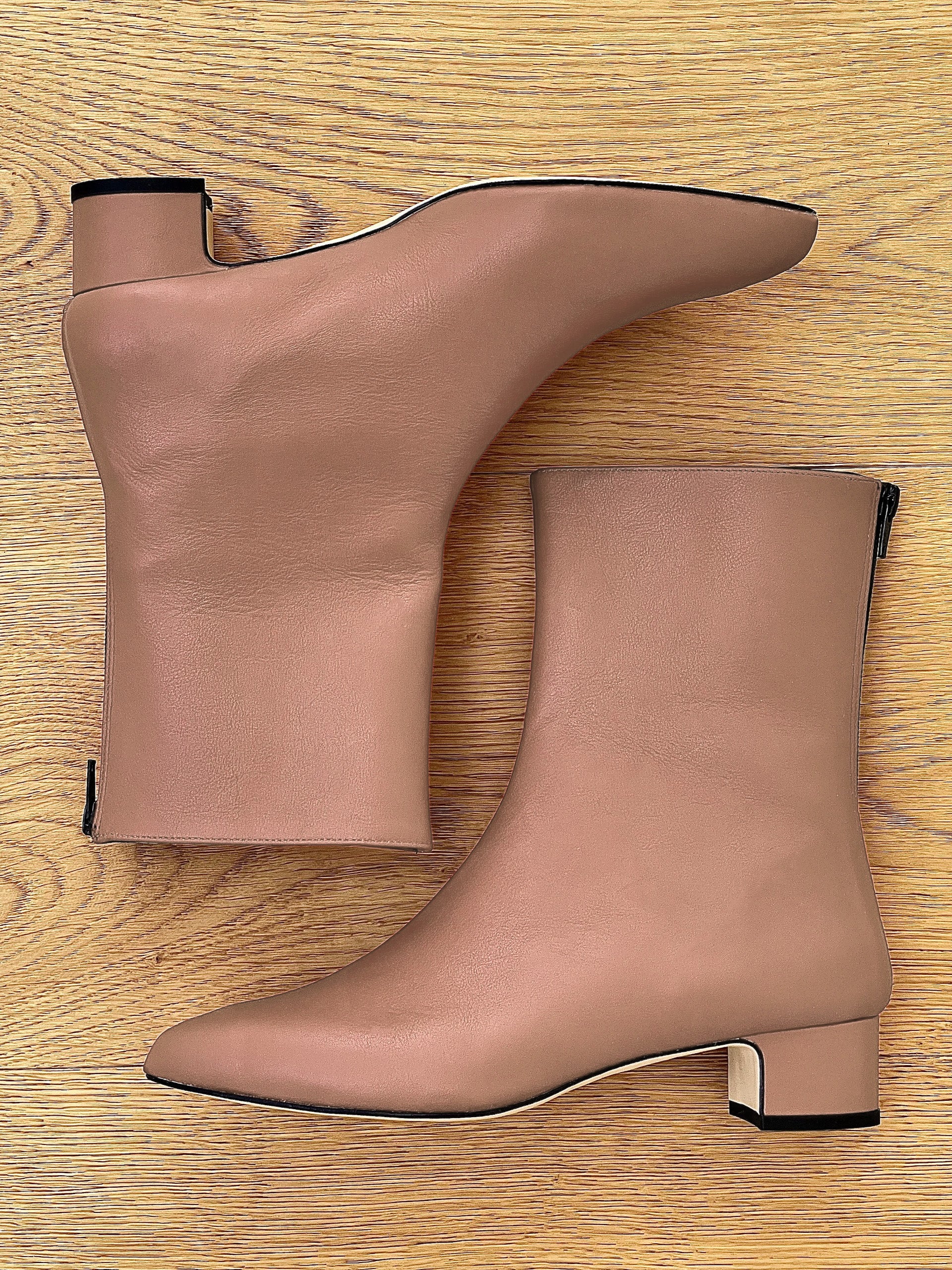 Kotníčková obuv se širokým podpatkem a zadním zipem.