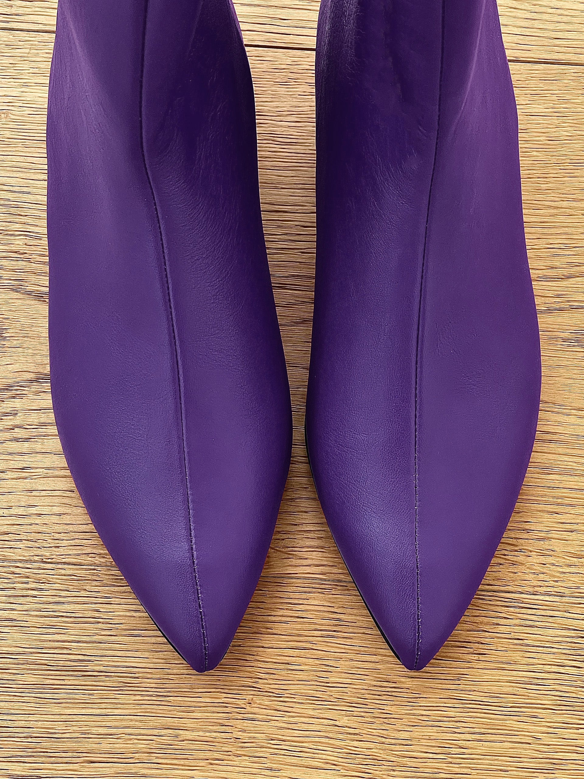 Kotníčková obuv se širokým podpatkem a zadním zipem.