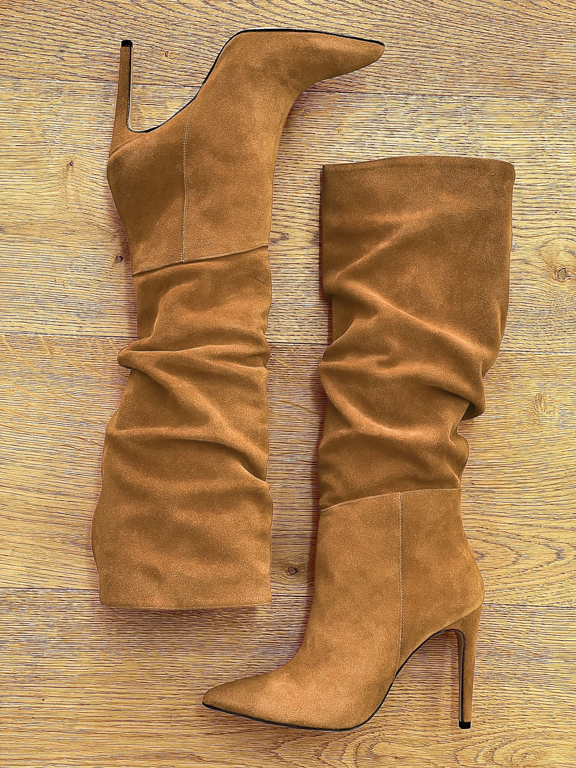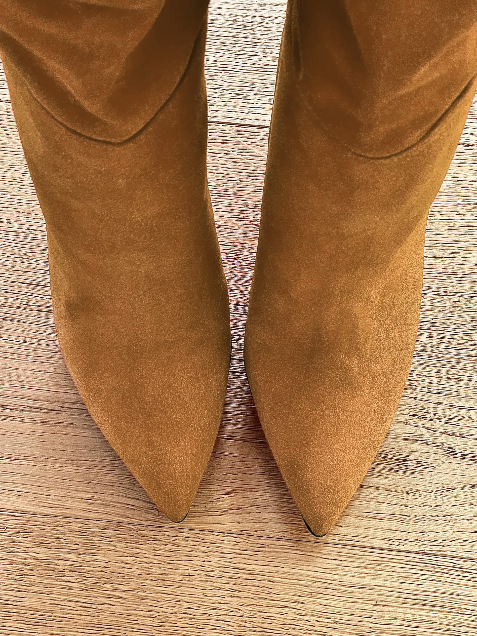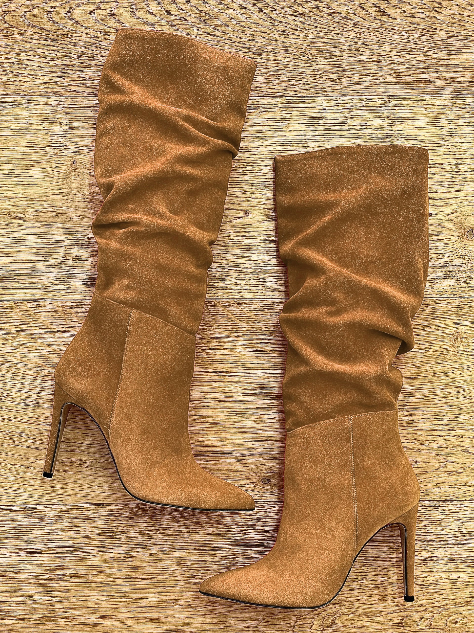 Schlupfstiefel aus Wildleder mit 10 cm Stilettoabsatz.