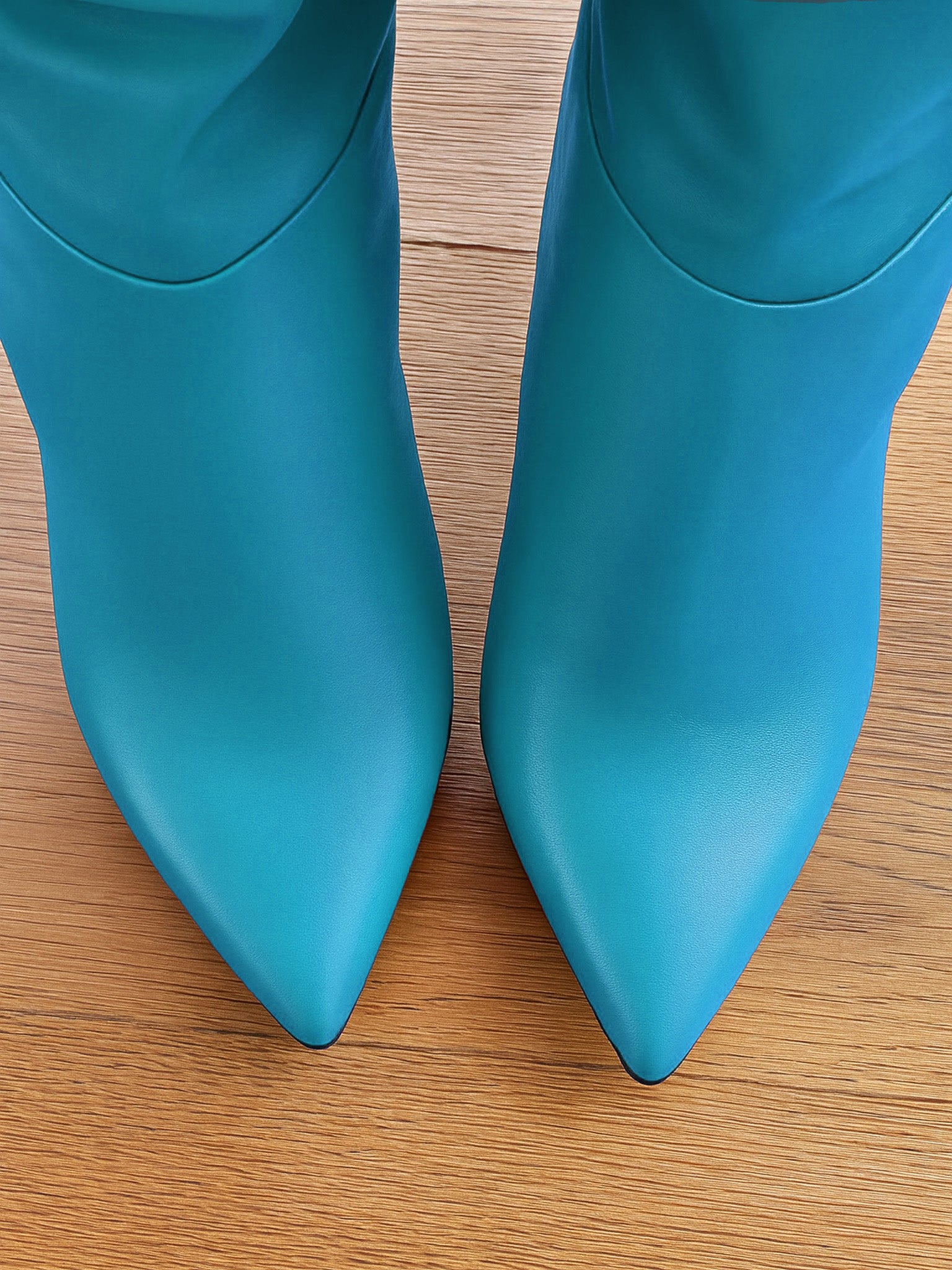 High-Top-Stiefel mit kaskadenförmigem, röhrenförmigem Stilettoabsatz.