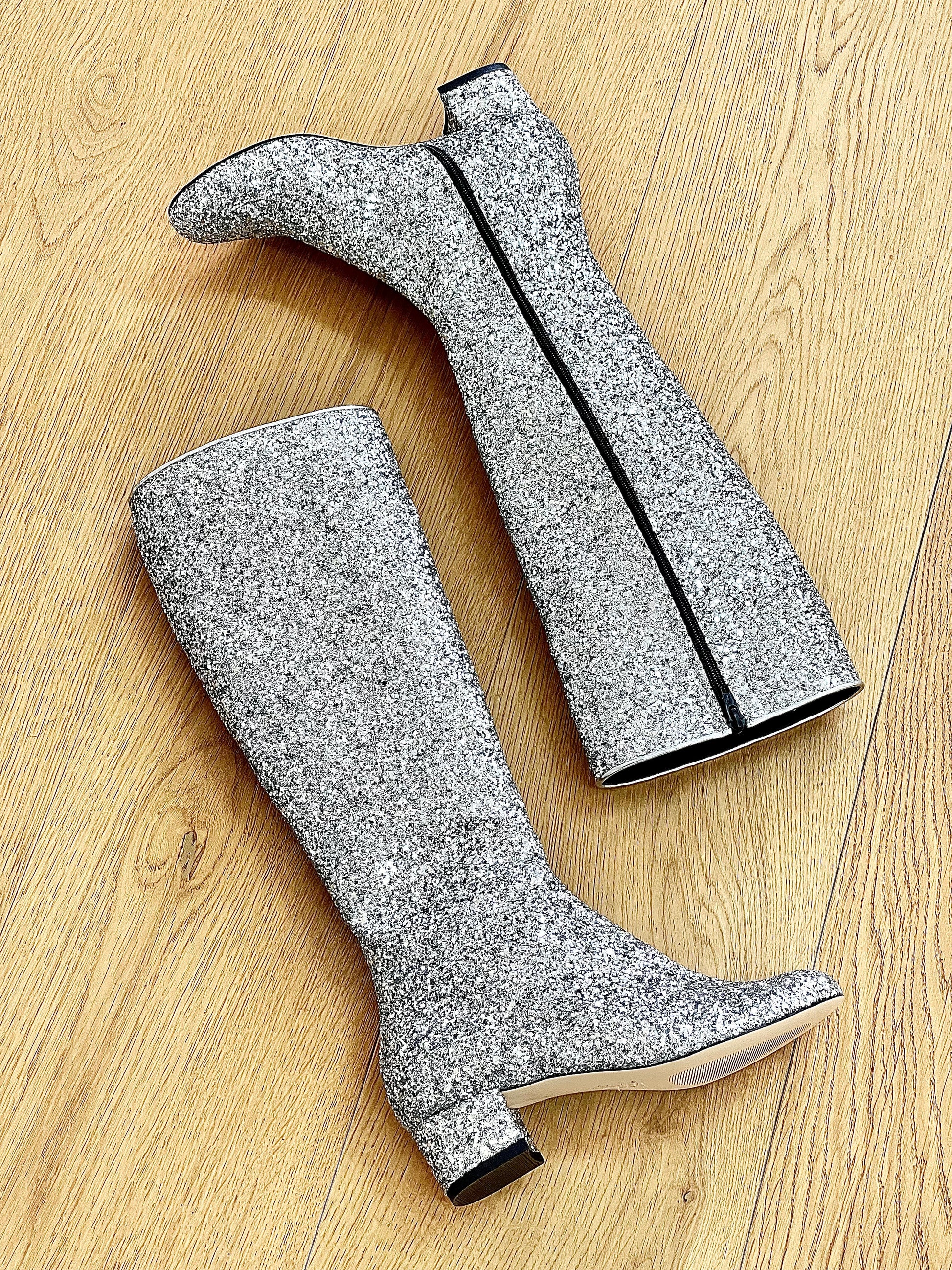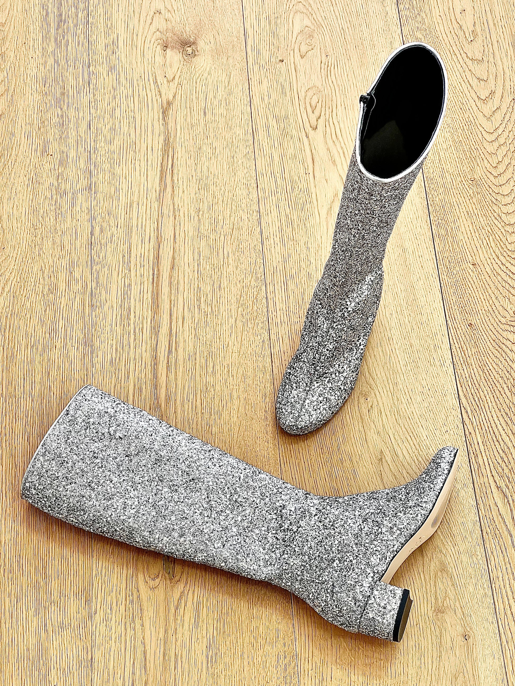 Niedrige Stiefel mit runder Spitze und breitem Absatz.