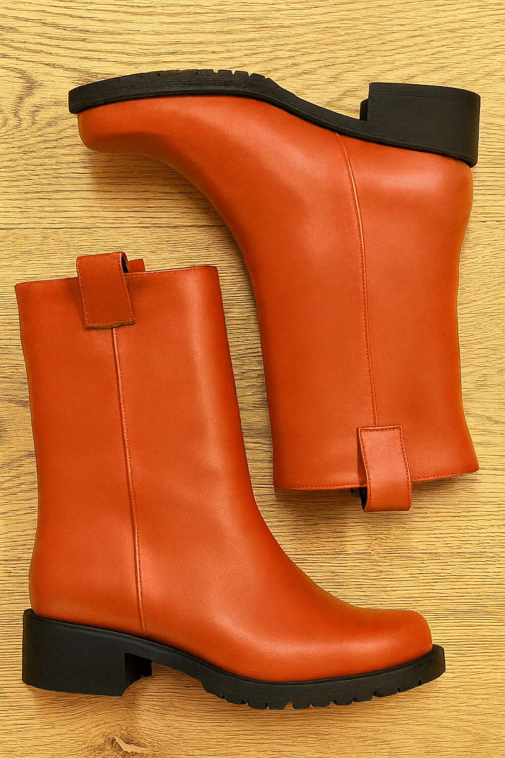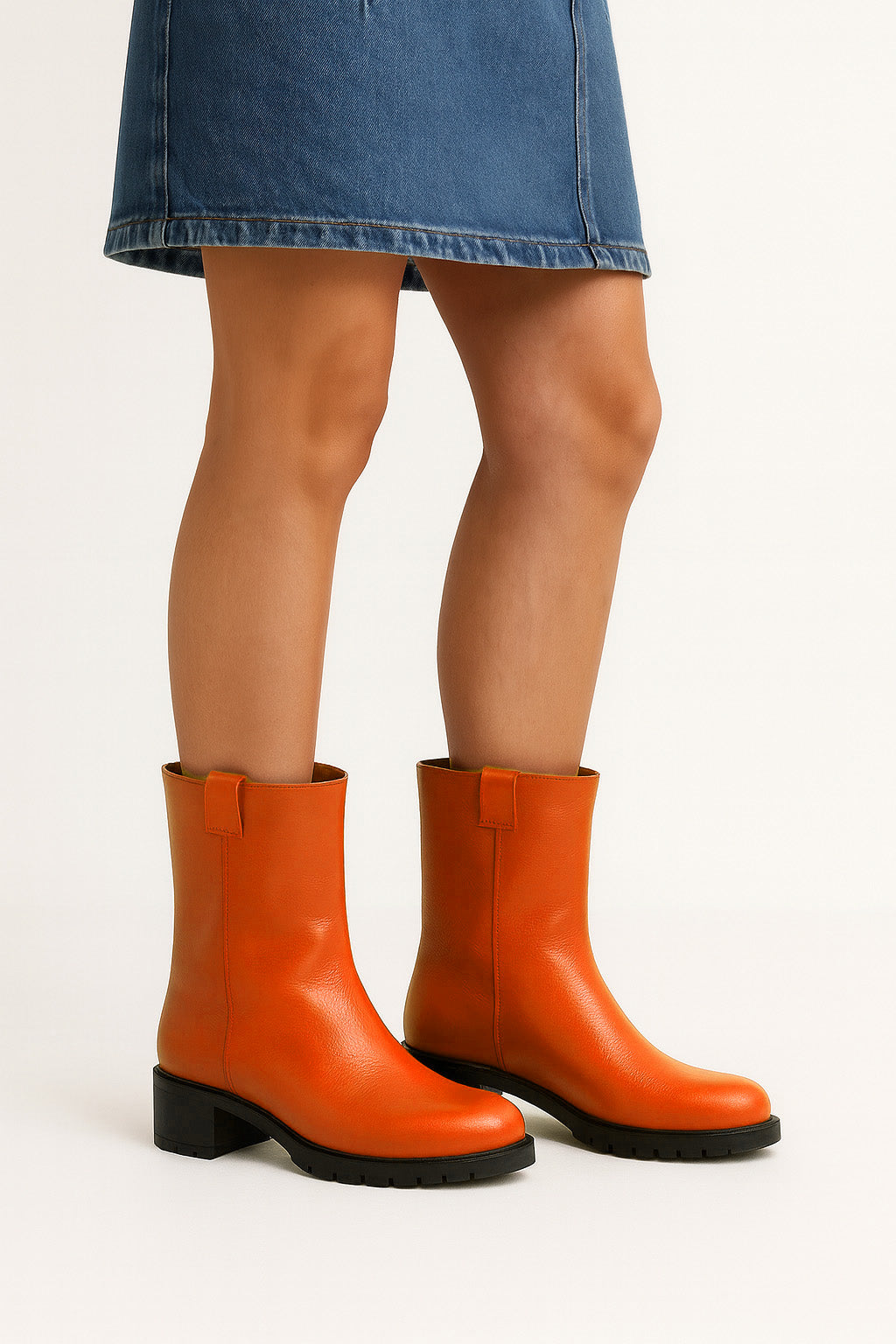 Röhrenstiefel mit runder Zehe.