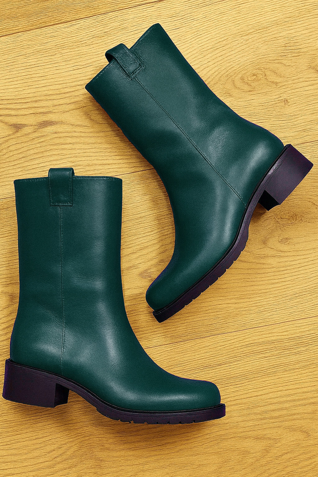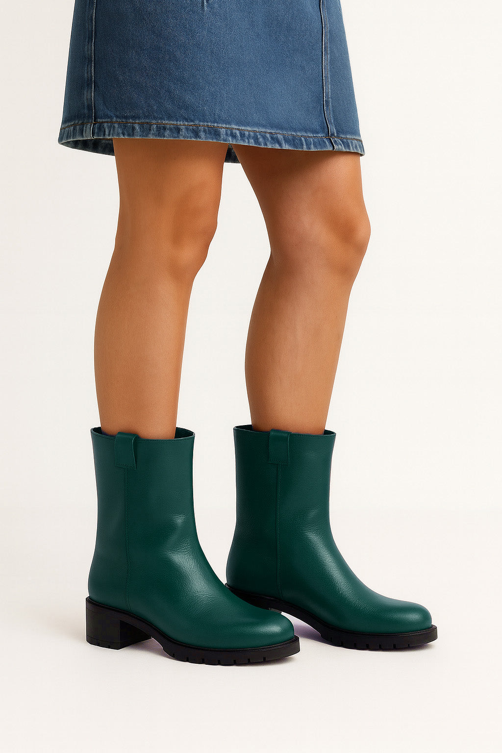 Röhrenstiefel mit runder Zehe.