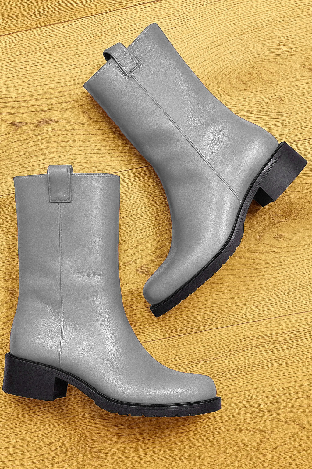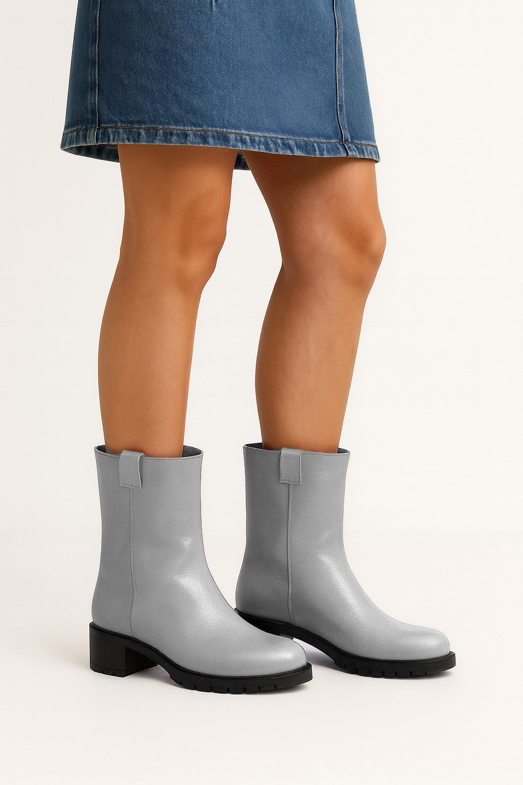Röhrenstiefel mit runder Zehe.