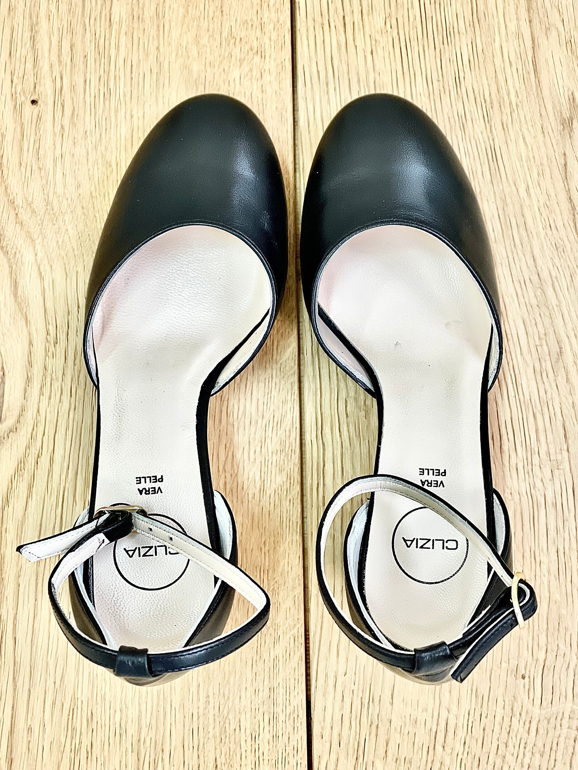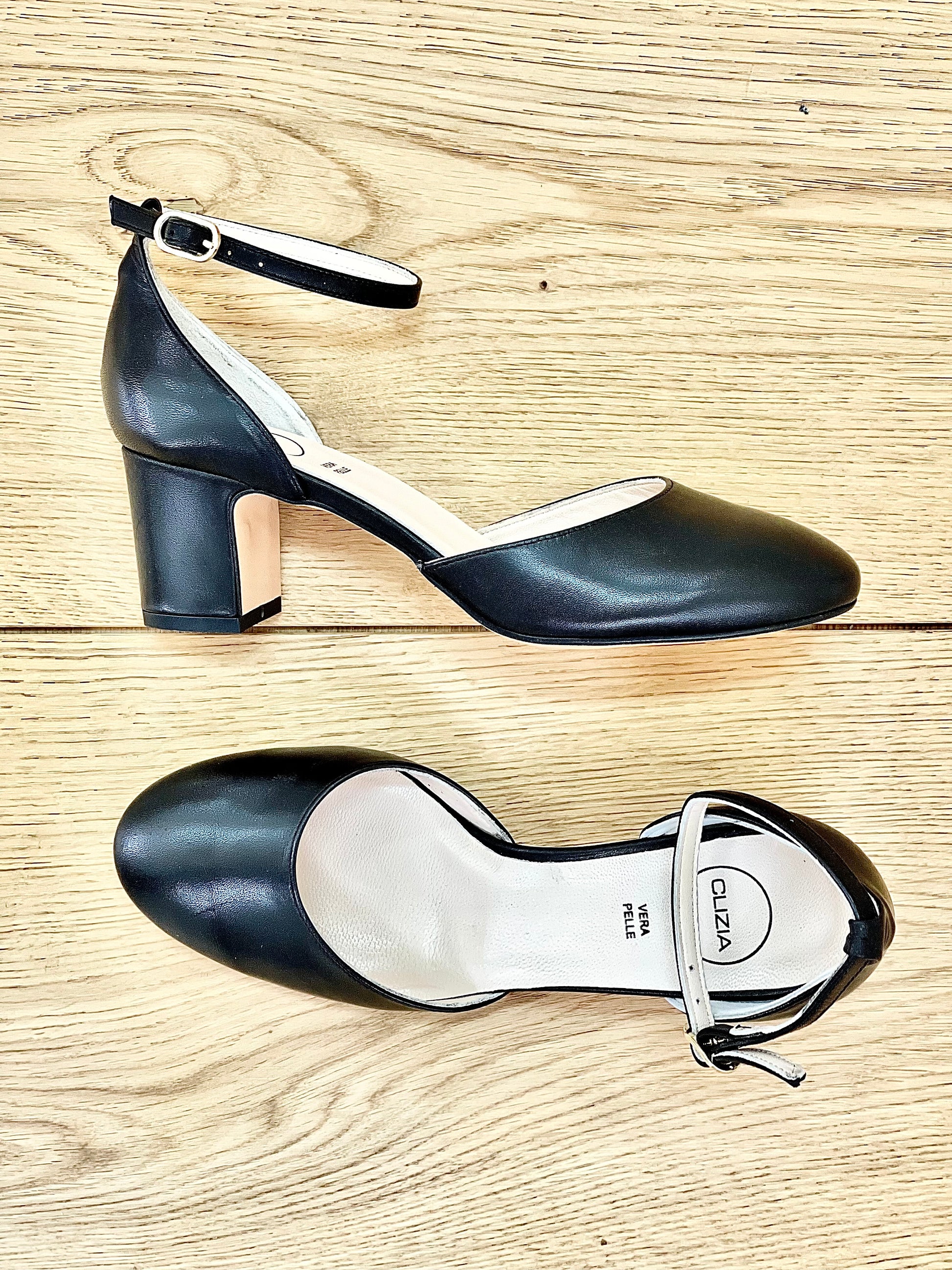 Pumps mit abgerundeter Zehenpartie und breitem Absatz aus Leder.