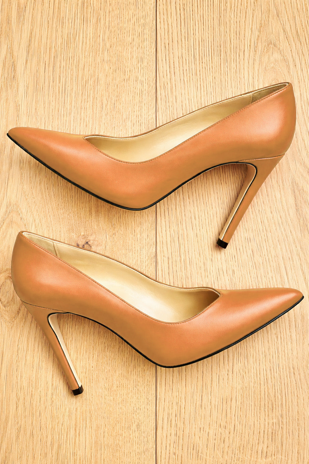 Pumps mit spitzer Zehenpartie, V-Ausschnitt und Stilettoabsatz.