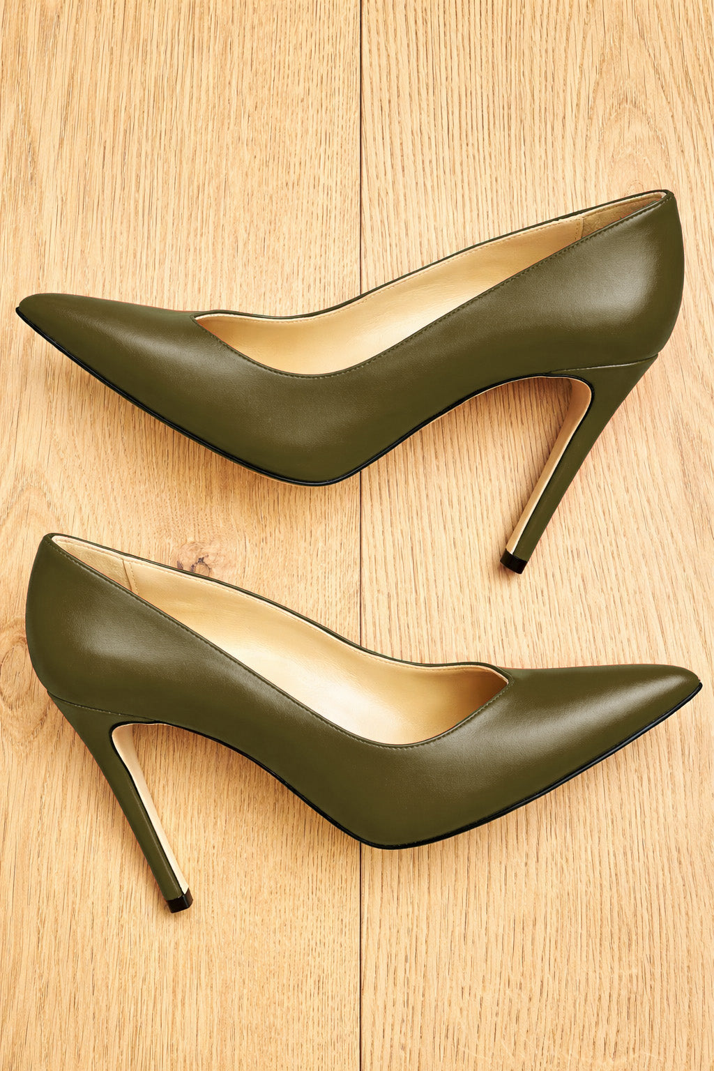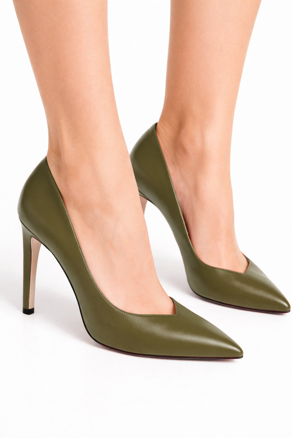 Pumps mit spitzer Zehenpartie, V-Ausschnitt und Stilettoabsatz.