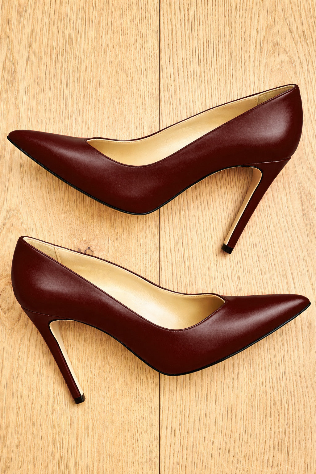 Pumps mit spitzer Zehenpartie, V-Ausschnitt und Stilettoabsatz.
