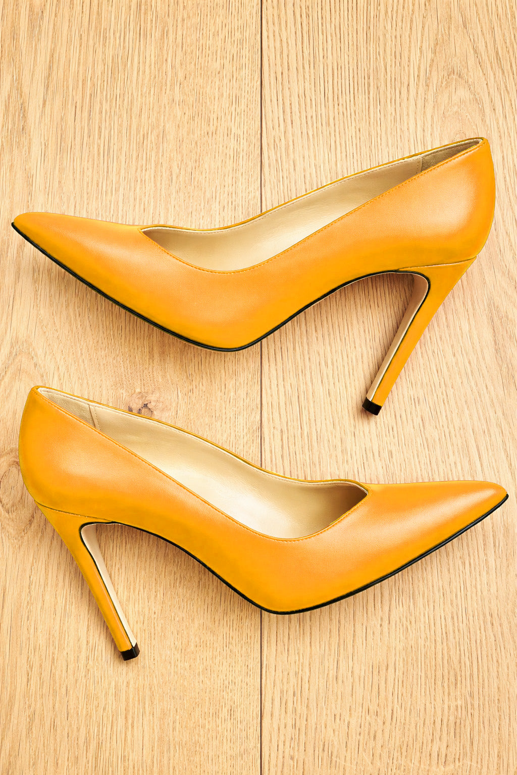 Pumps mit spitzer Zehenpartie, V-Ausschnitt und Stilettoabsatz.