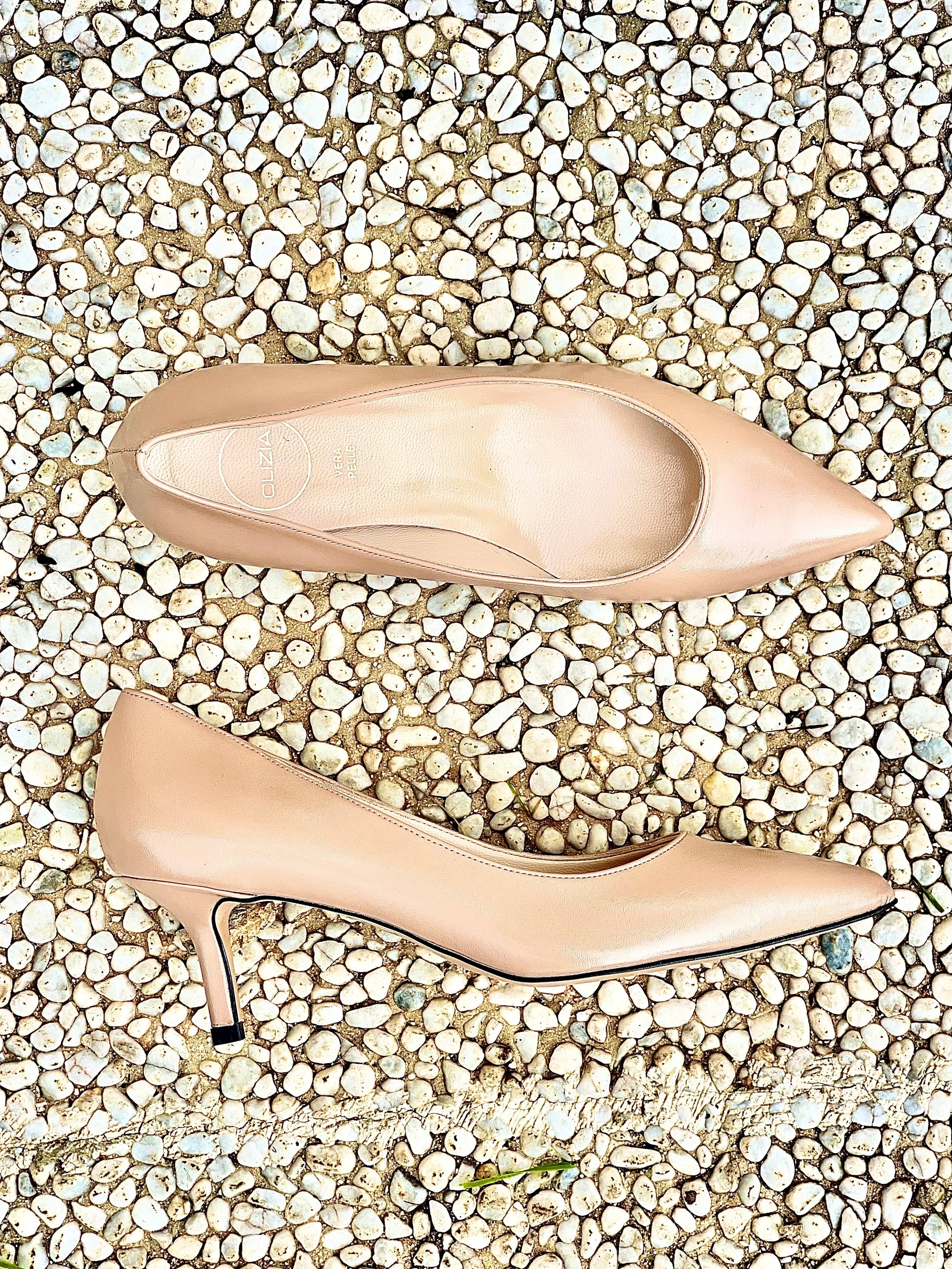 Spitz zulaufende Pumps mit 6 cm schmalem Absatz.