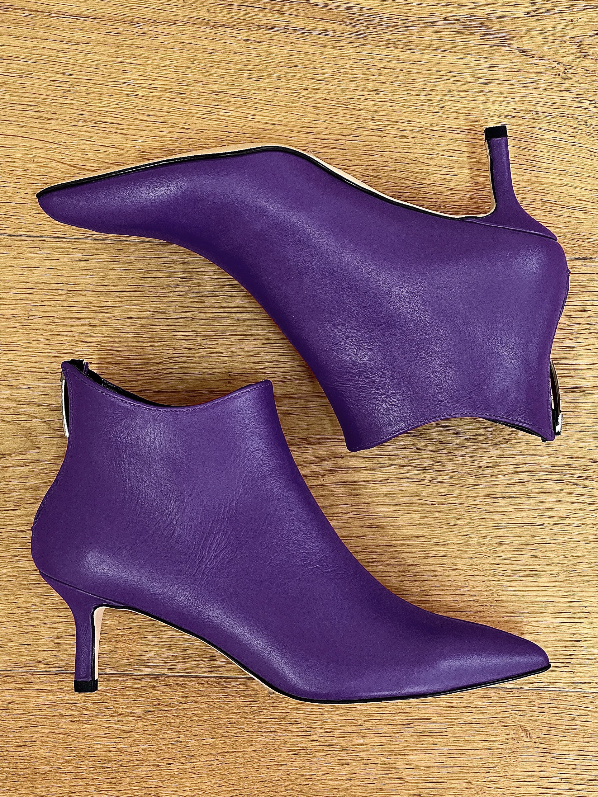 Spitz zulaufende Stiefelette mit 6 cm Absatz.