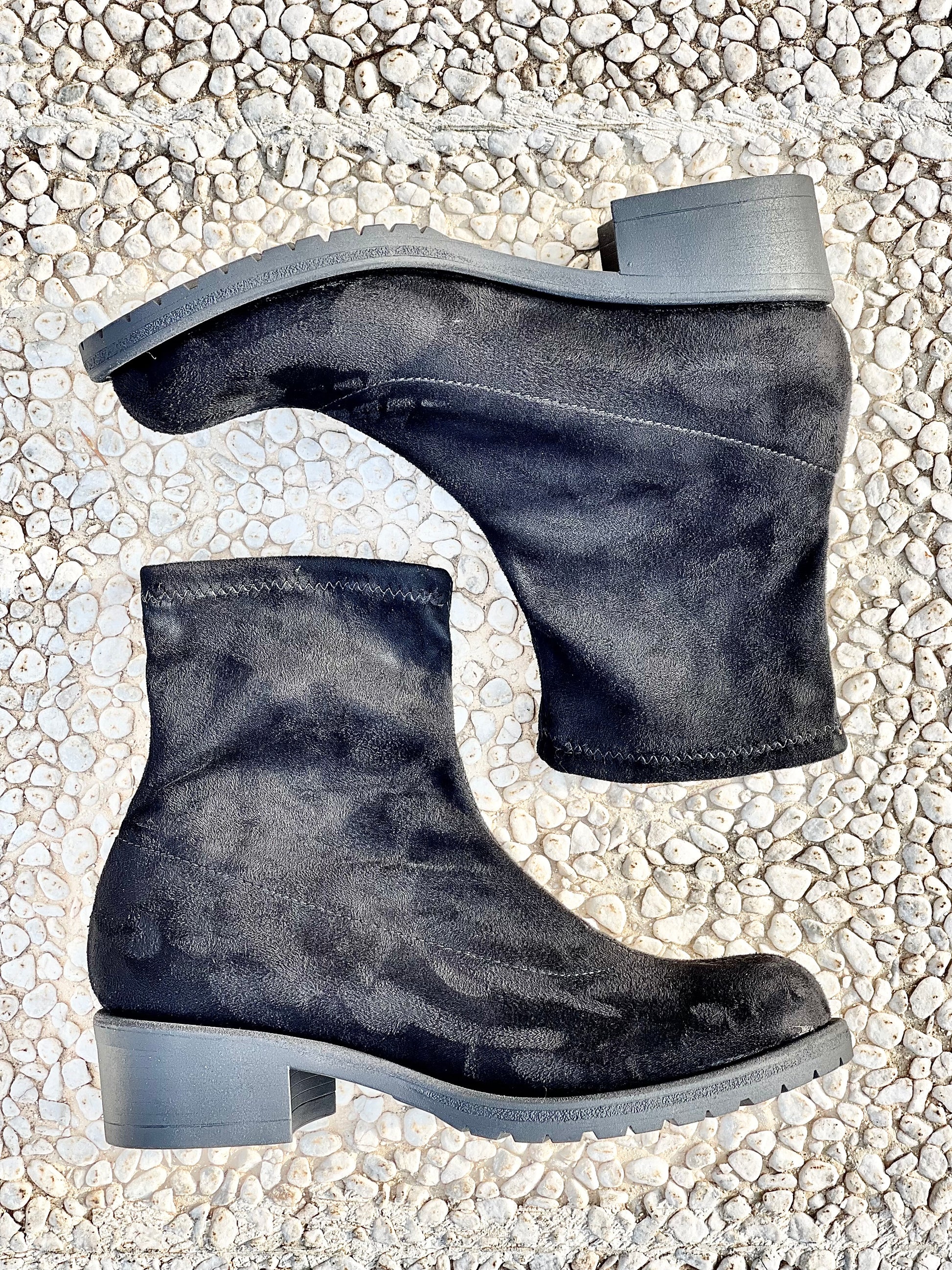 Elastische Stiefelette aus Mikrofaser, Absatz 3 cm.