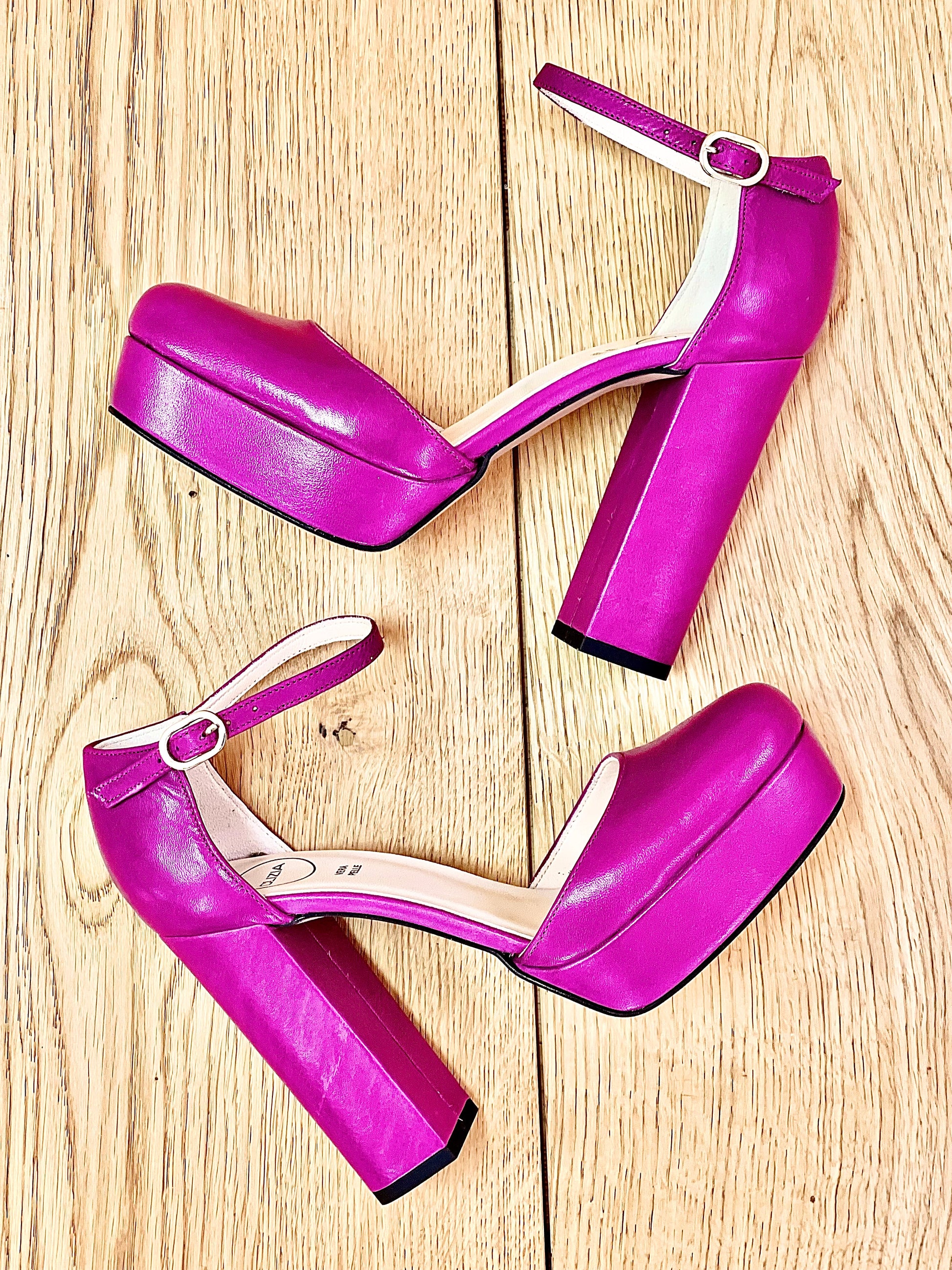 Halbquadratische Spitze und Dekolletee aus Leder mit 12 cm Absatz und 3 cm Plateau.