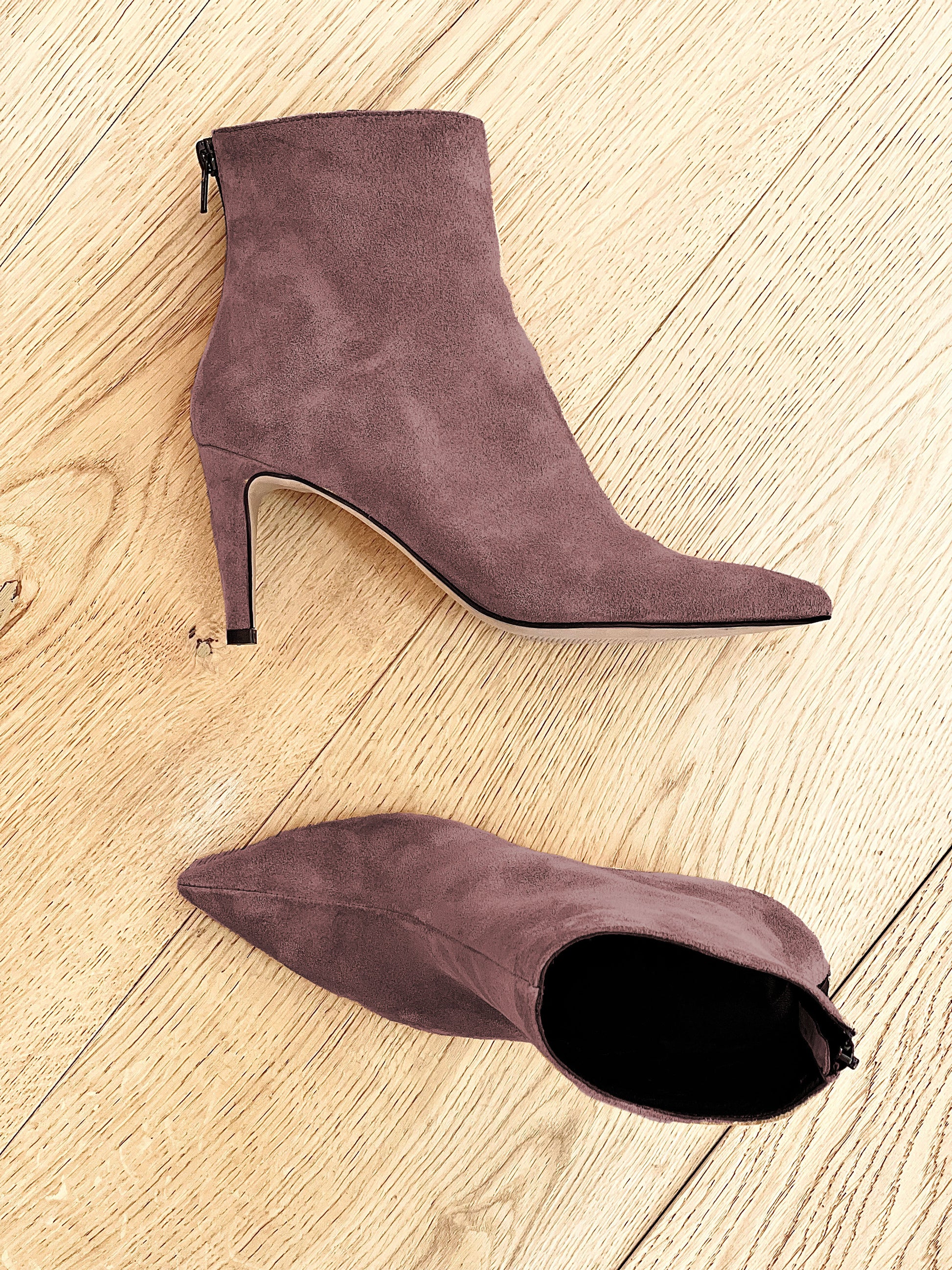 Wildlederstiefel mit Stilettoabsatz und Reißverschluss.