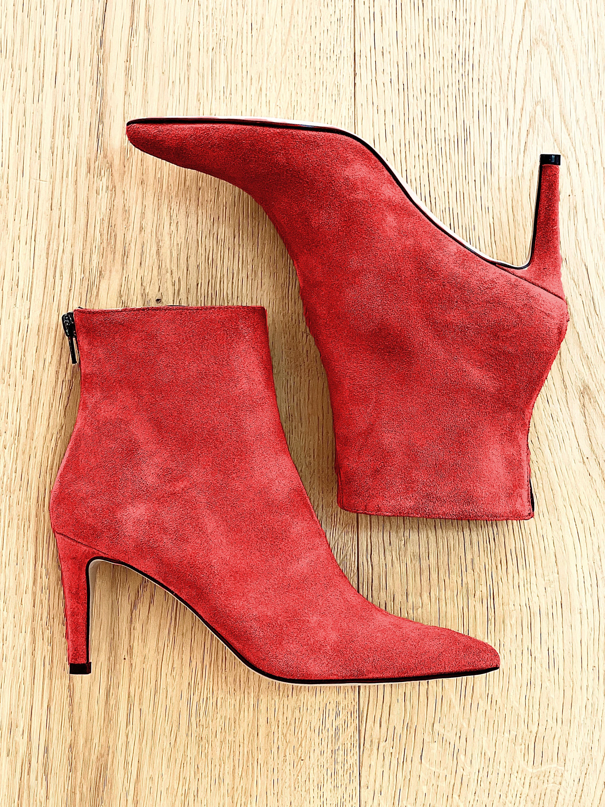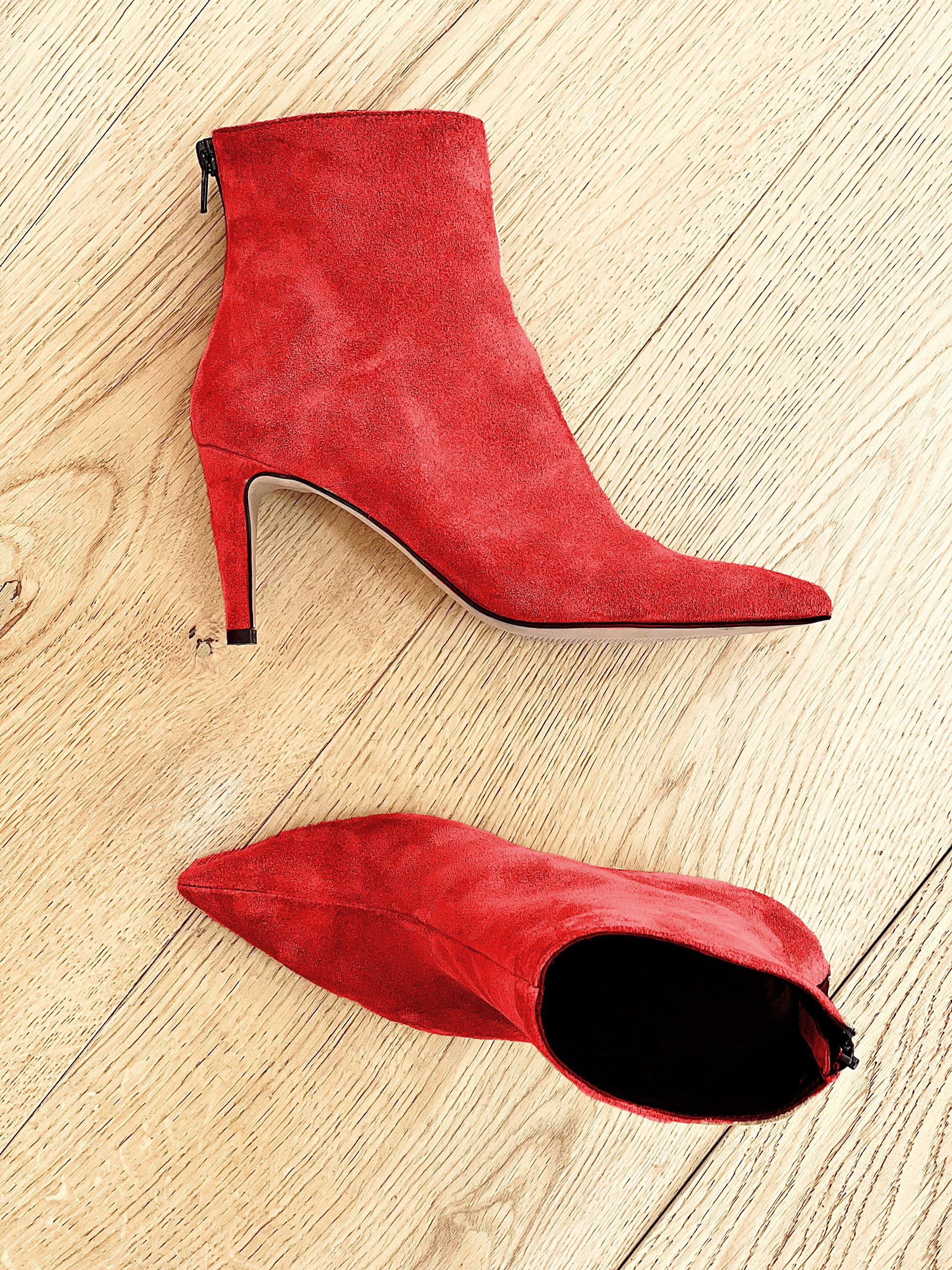 Wildlederstiefel mit Stilettoabsatz und Reißverschluss.
