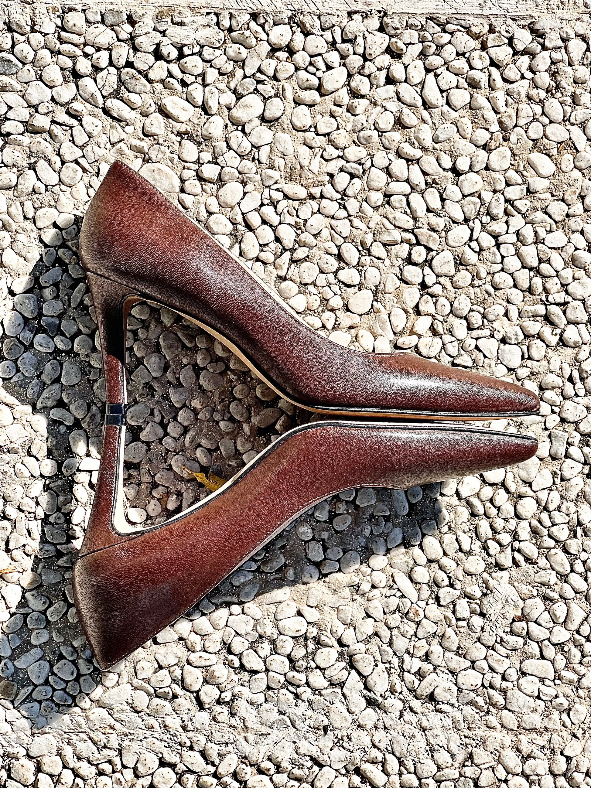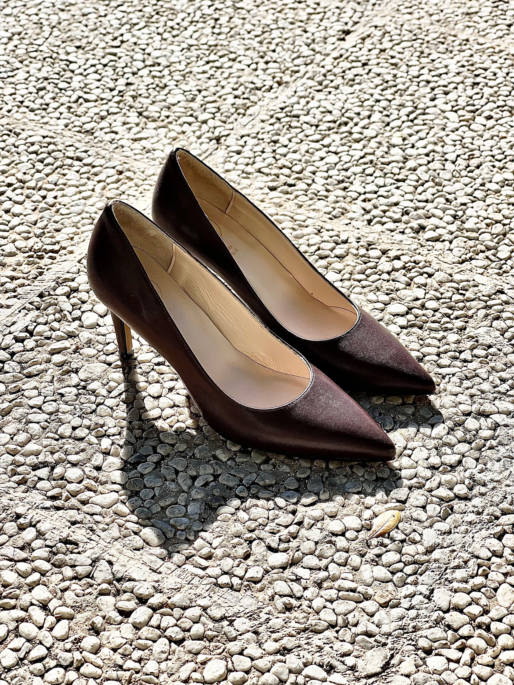 Spitz zulaufende Pumps aus Leder mit 7,5 cm Stilettoabsatz.