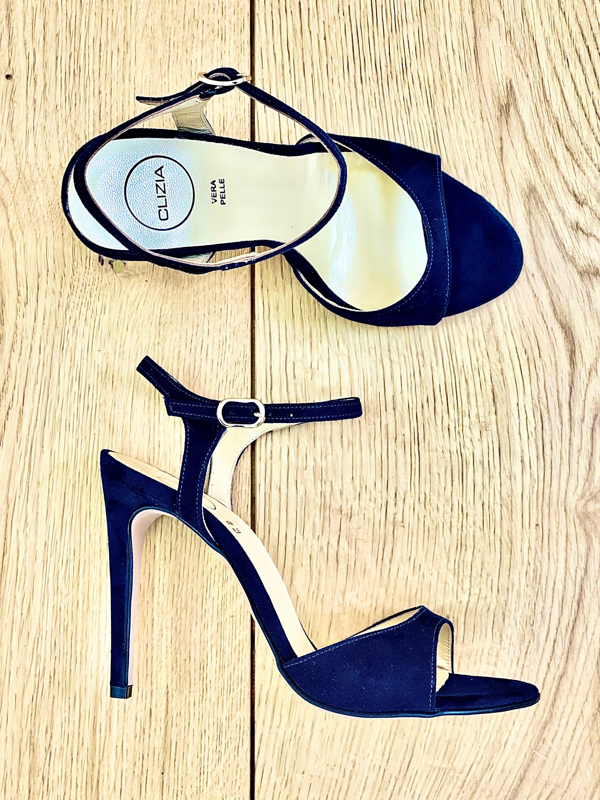 Hohe Sandalen mit Wildlederriemen und Stilettoabsatz.