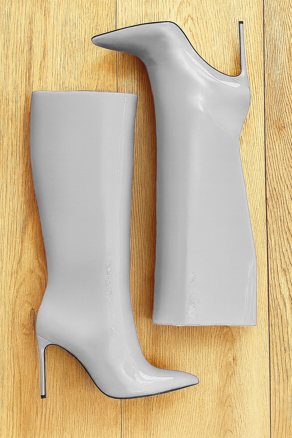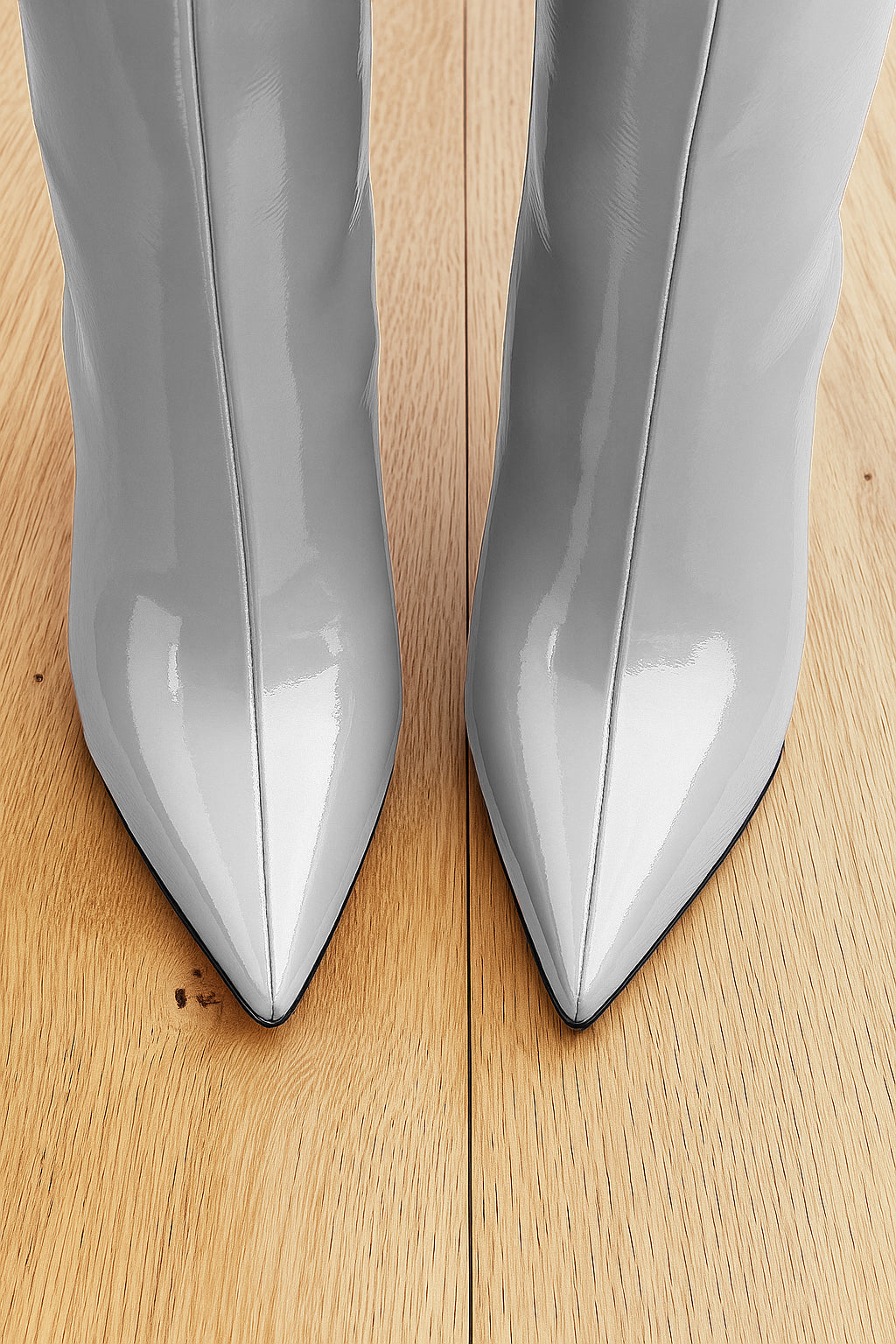 Hohe schlauchförmige Stiefel mit Stiletto-Absatz.