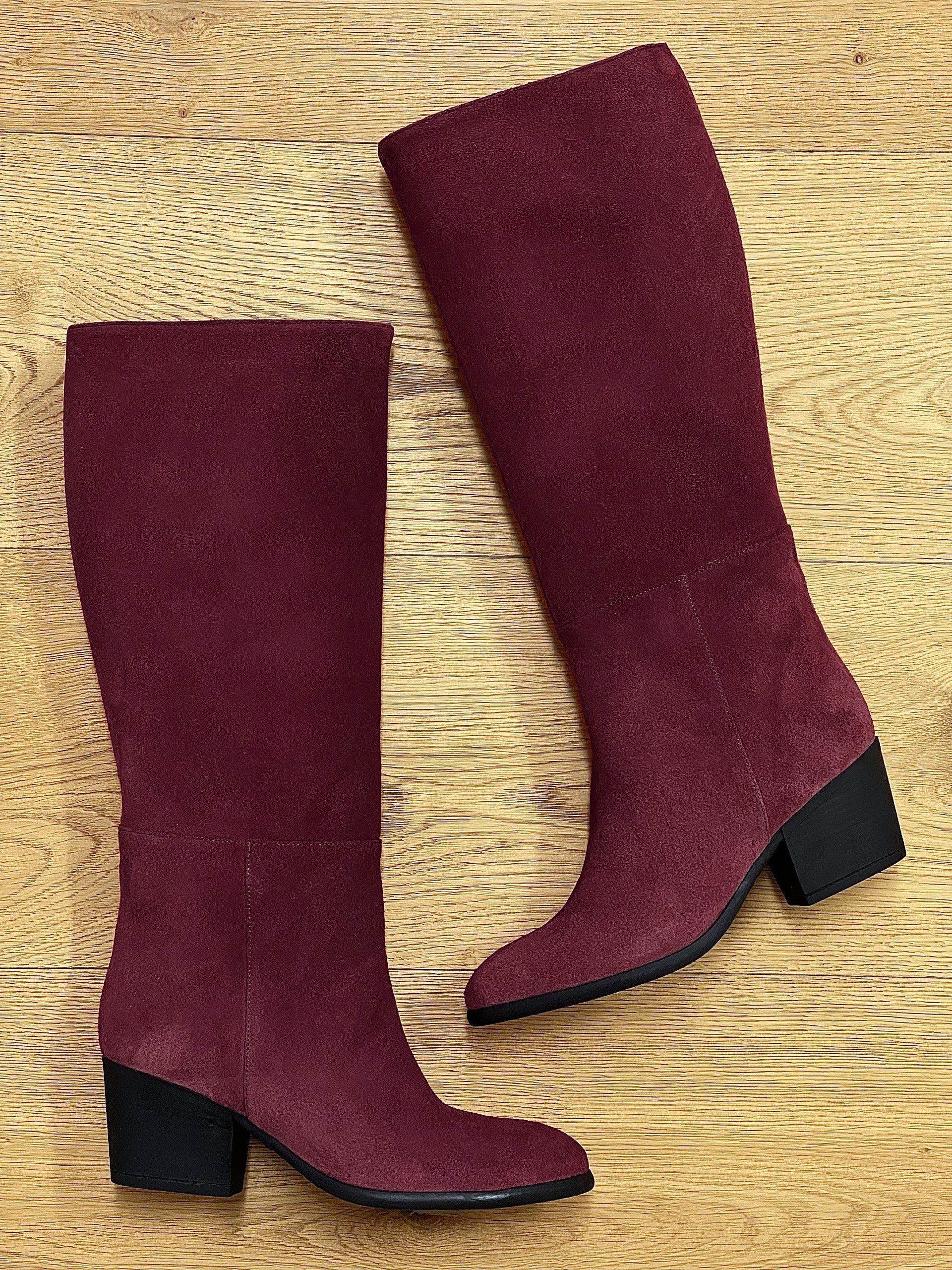 BURGUNDERFARBENER WILDLEDERKAMIN