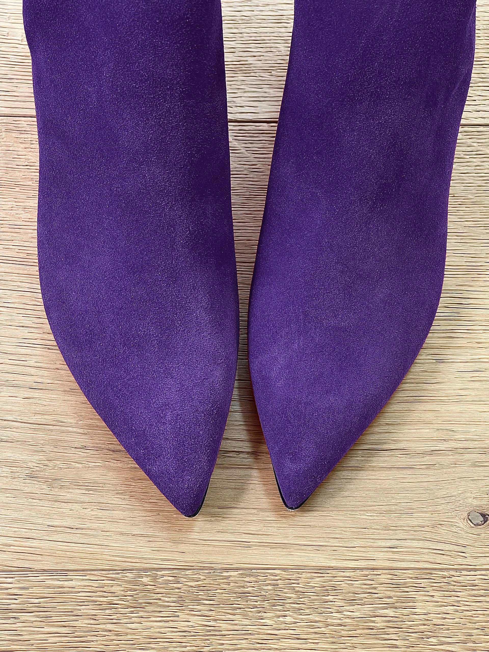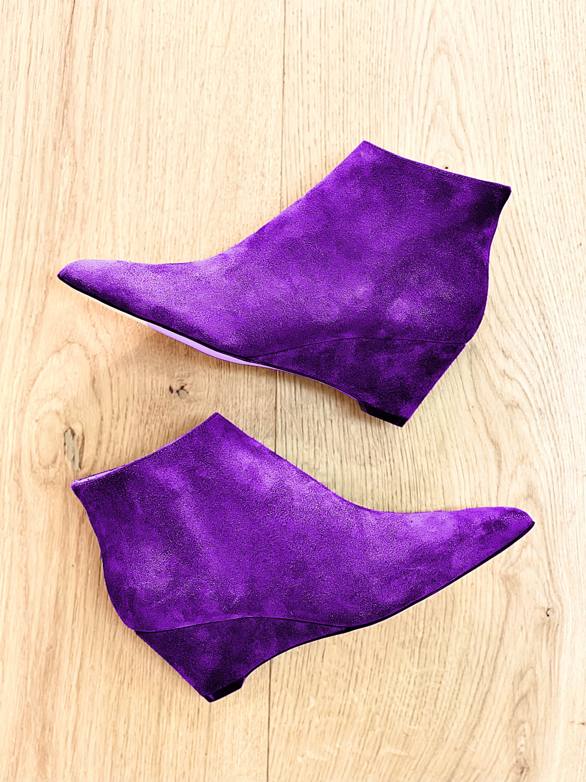 Stiefelette aus Wildleder mit einem 6 cm hohen Keil hinten.