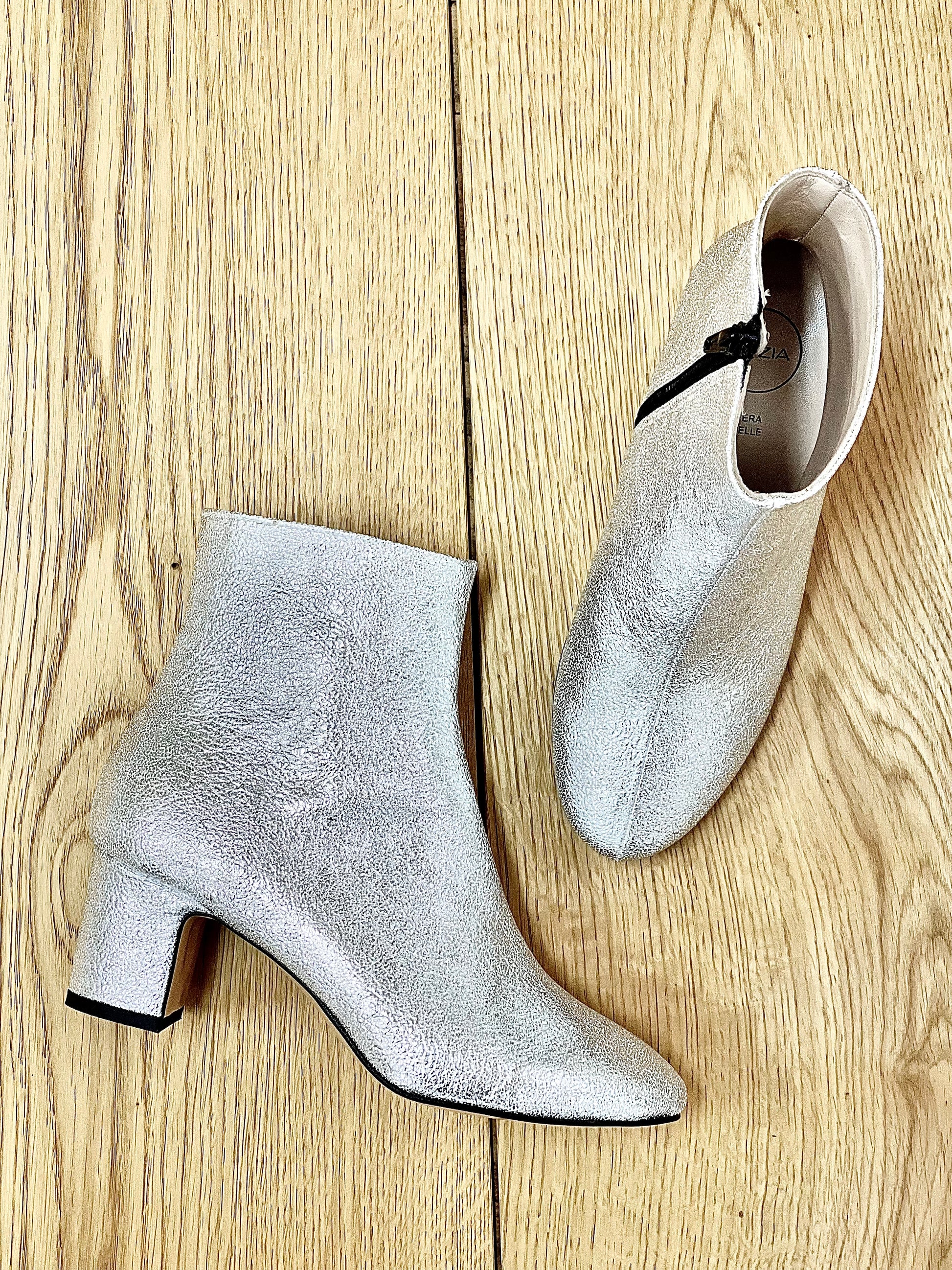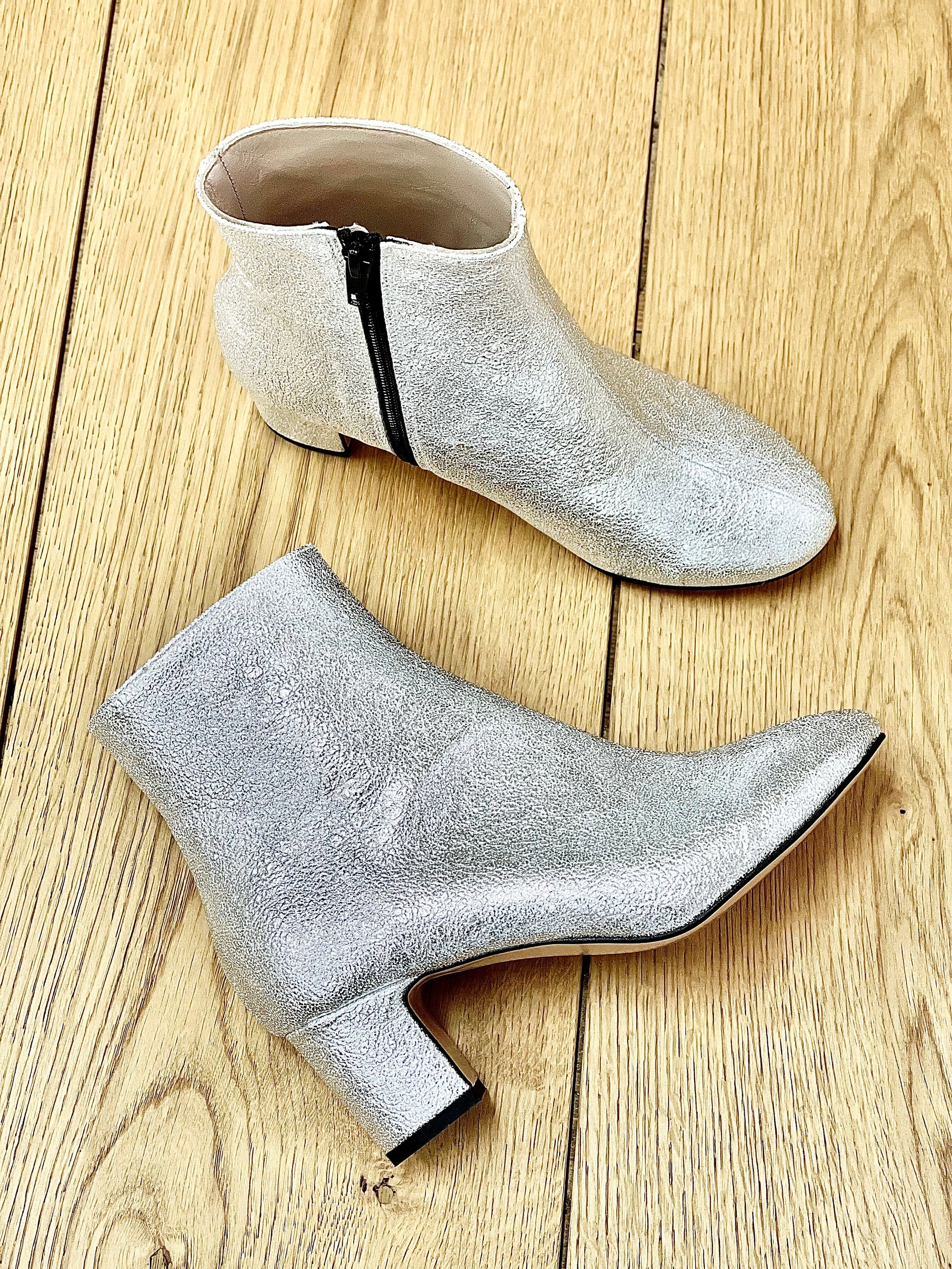 Stiefelette mit runder Spitze und breitem Absatz aus Lamianto.