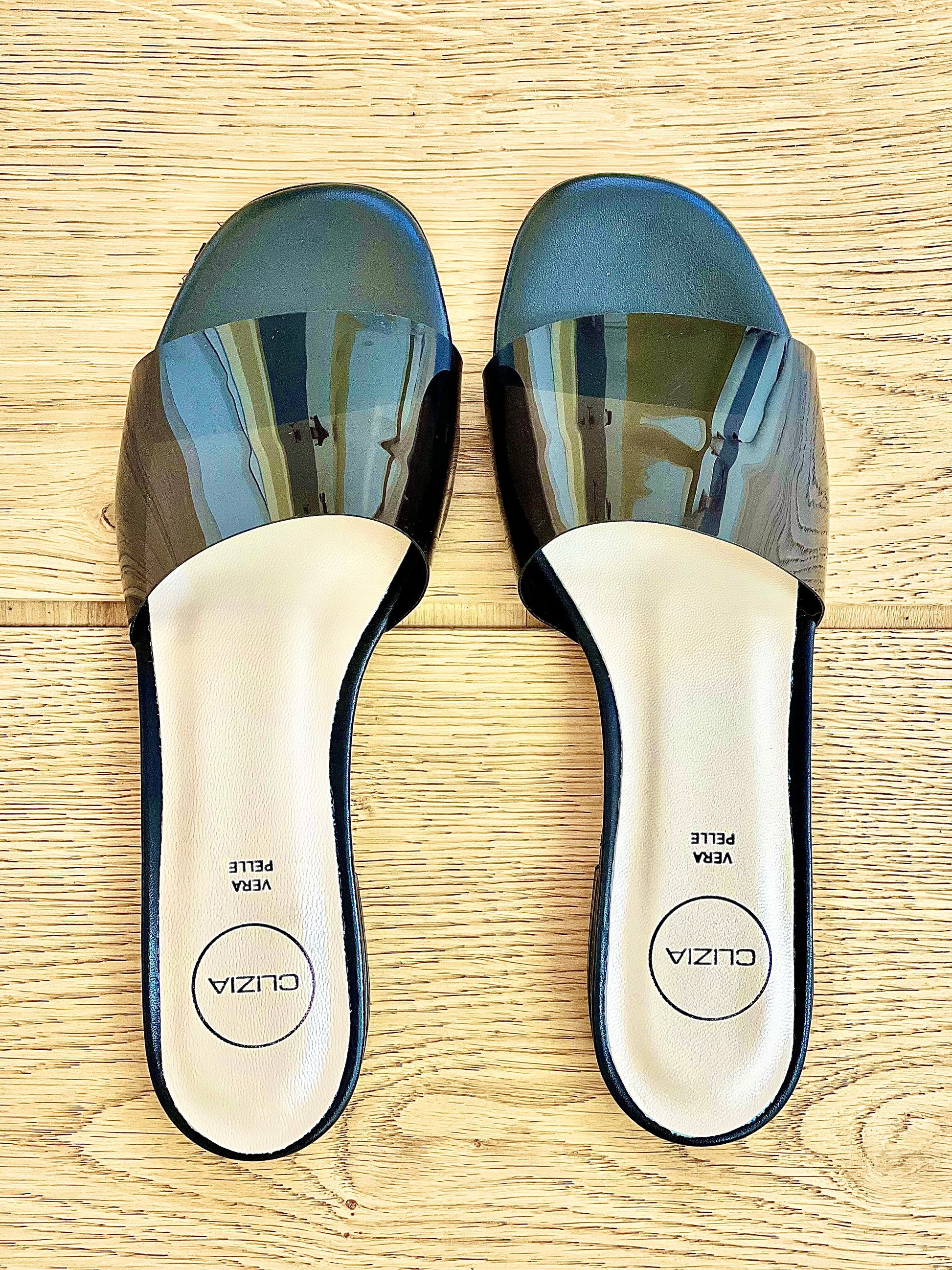 Niedrige Pantoletten-Sandalen aus PVC mit 2 cm Absatz.