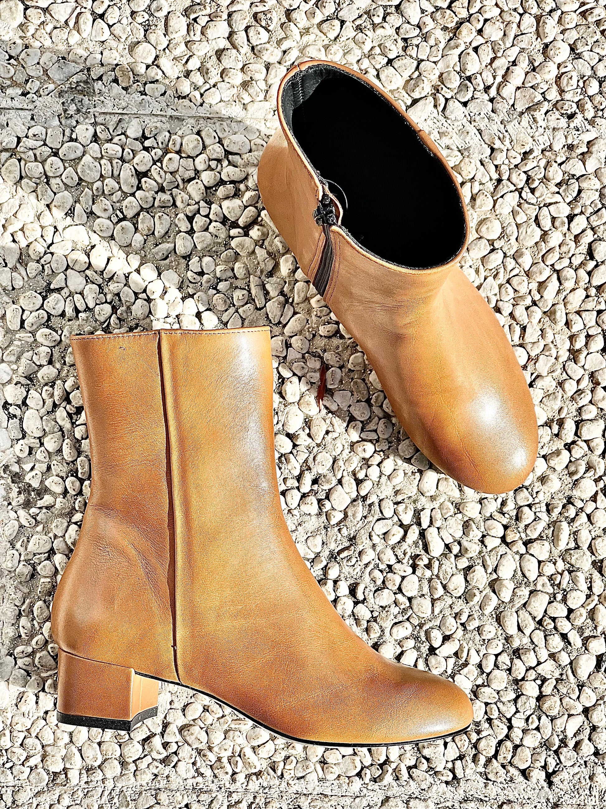 Lederstiefel mit runder Spitze und 4 cm Absatz.