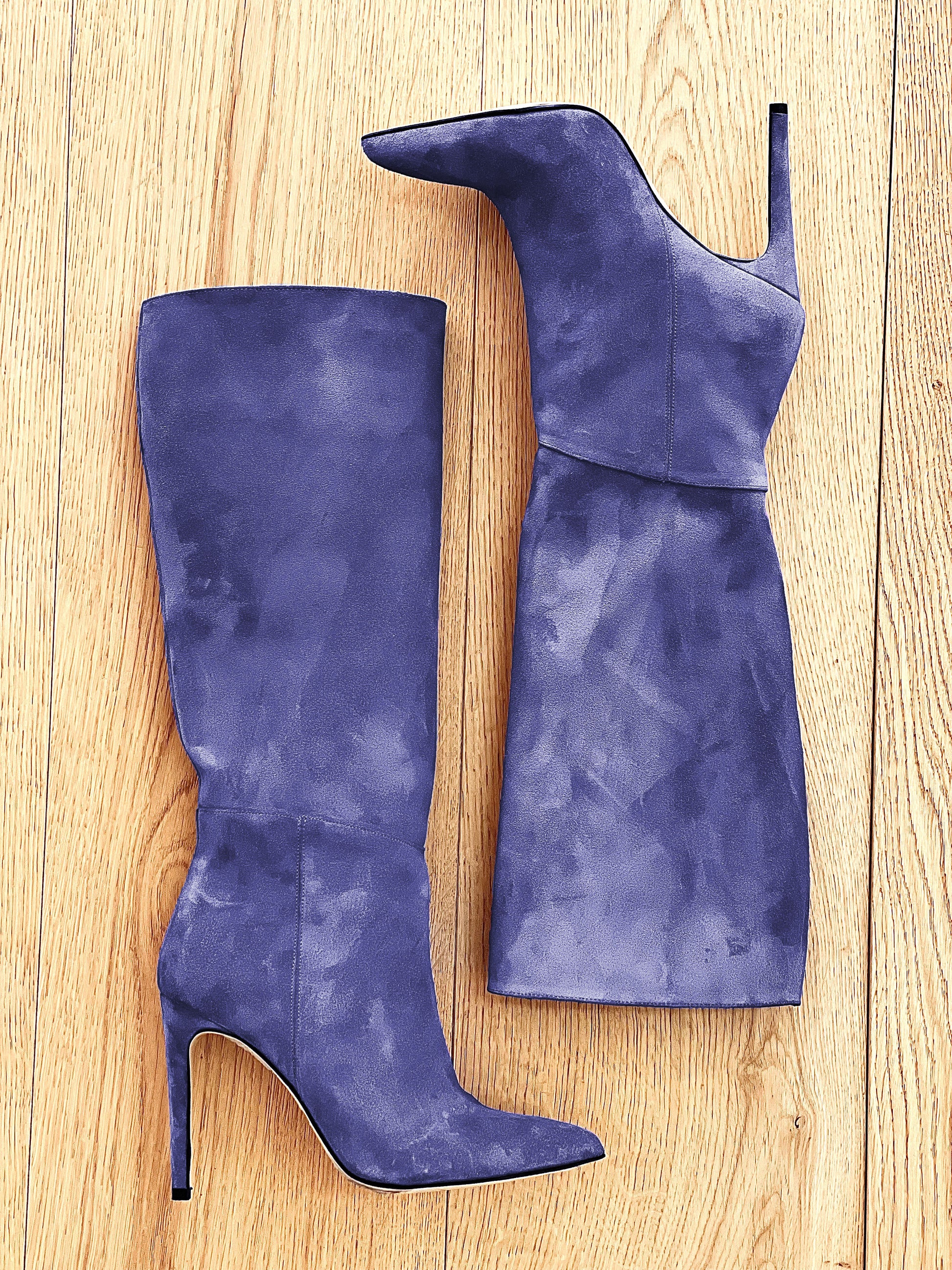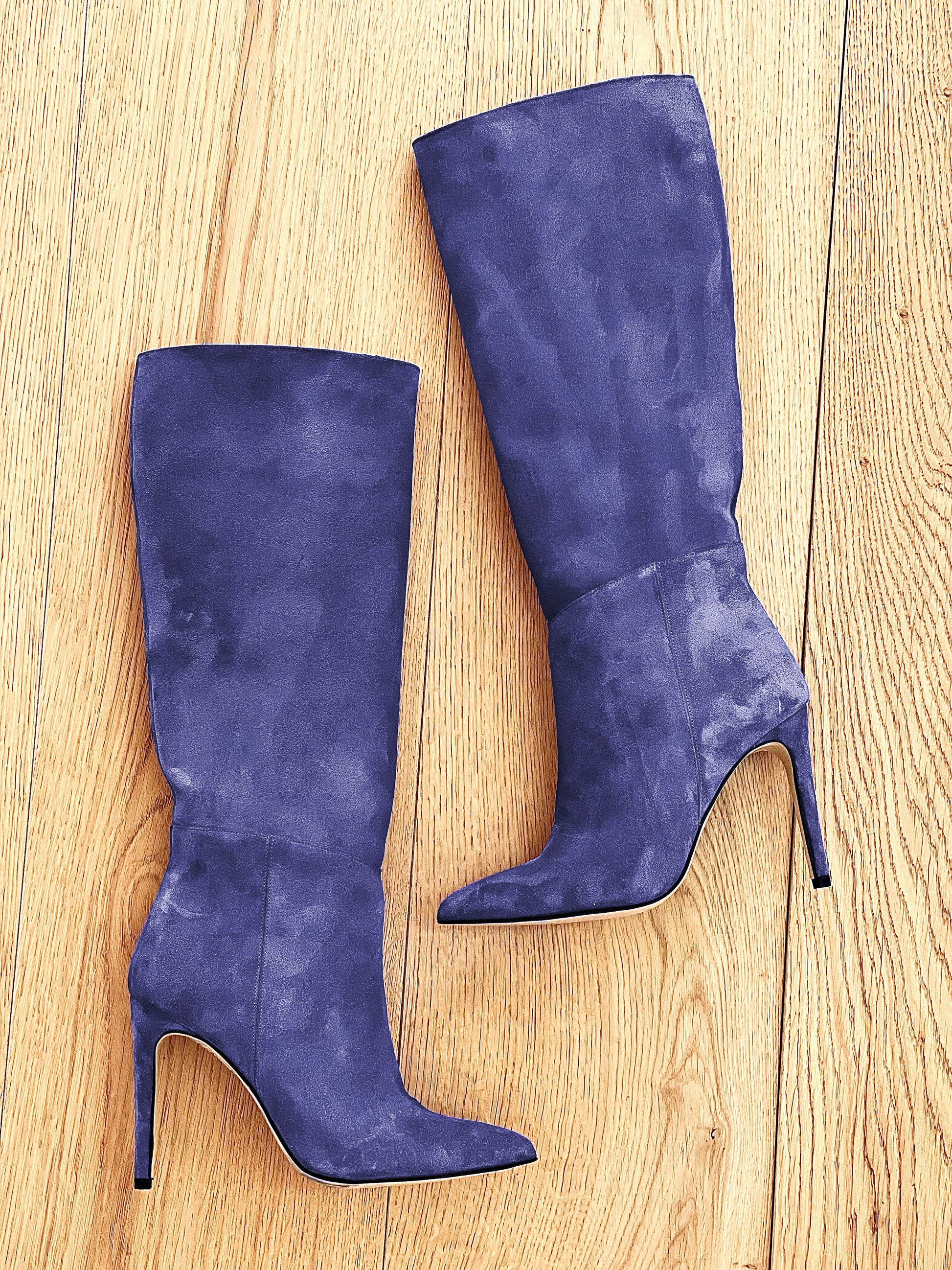 Stiefel aus Wildleder mit 10 cm hohem Stilettoabsatz.