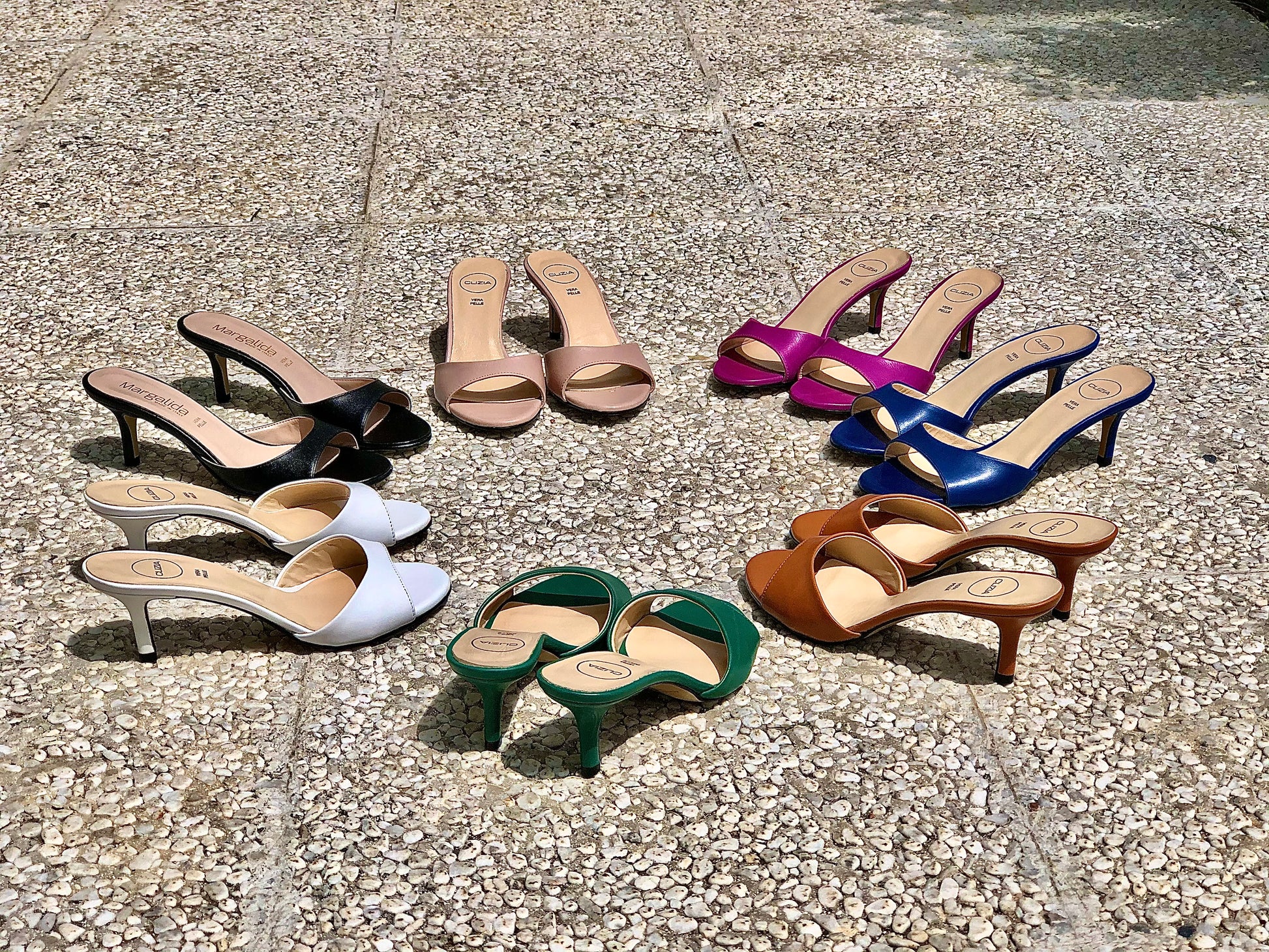 Niedrige Sandalen Pantoletten Leder Slipper Absatz 6cm.