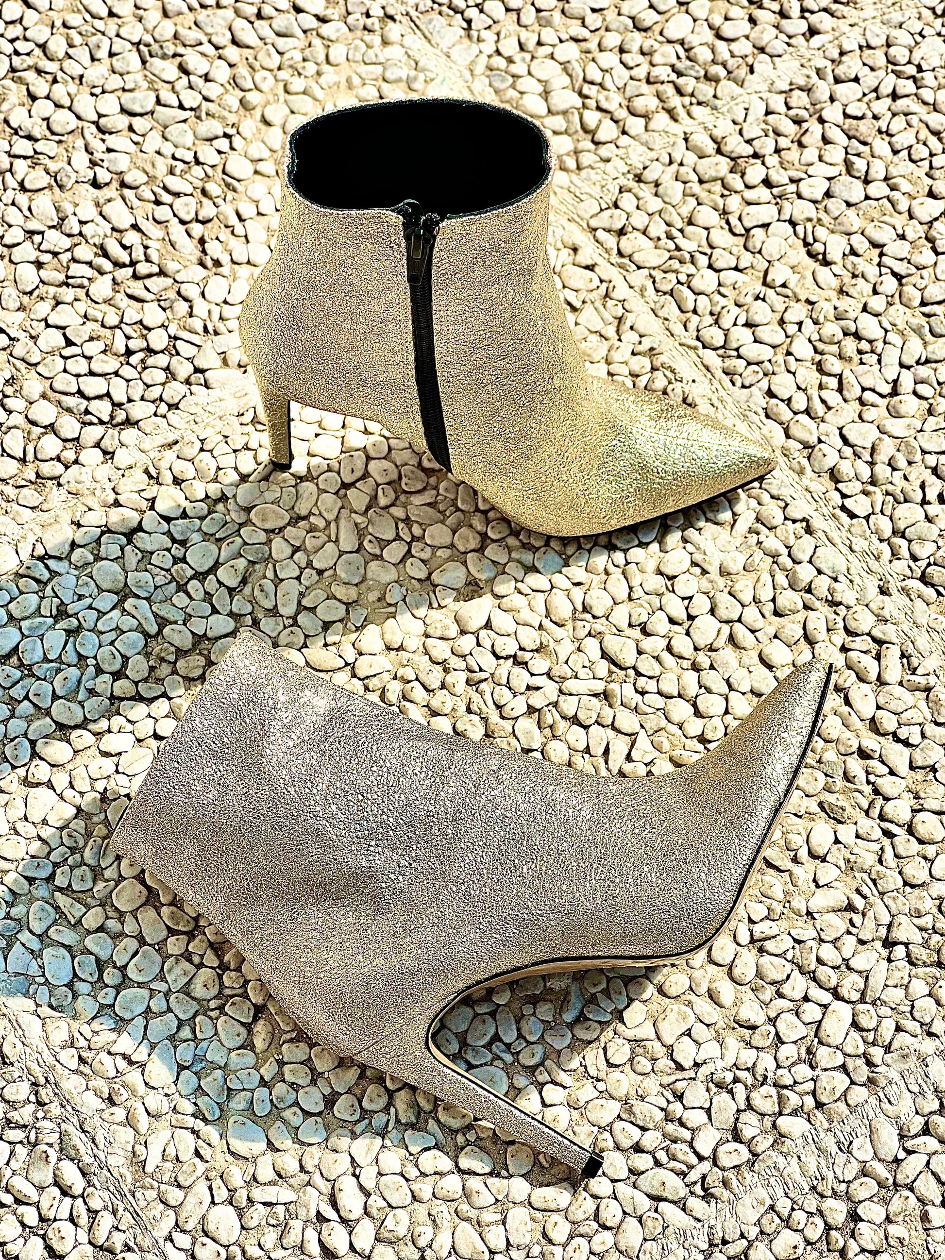 Laminierte Stiefelette mit hohem Stilettoabsatz.