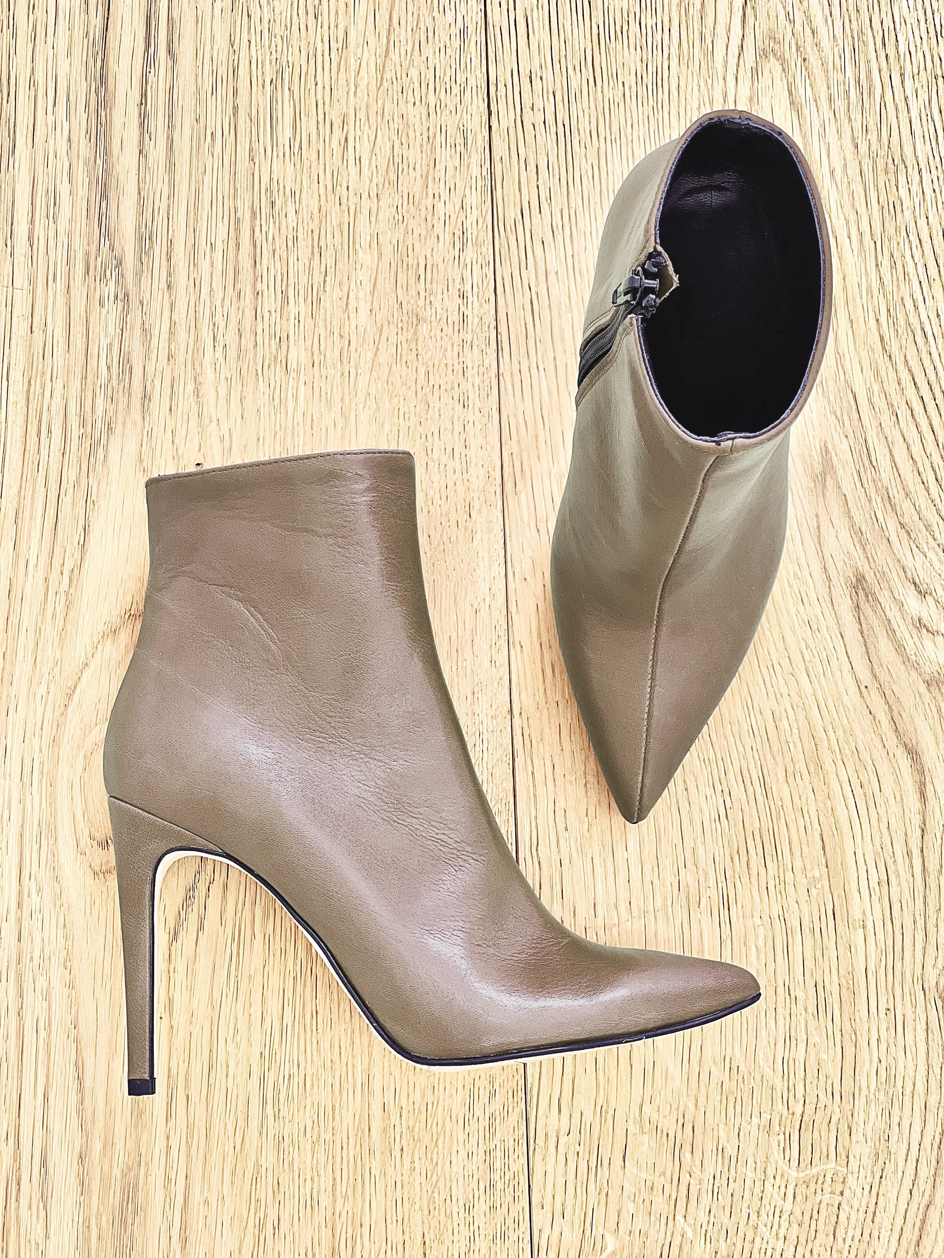 Hohe Stiefelette mit spitzem Lederabsatz (10 cm).