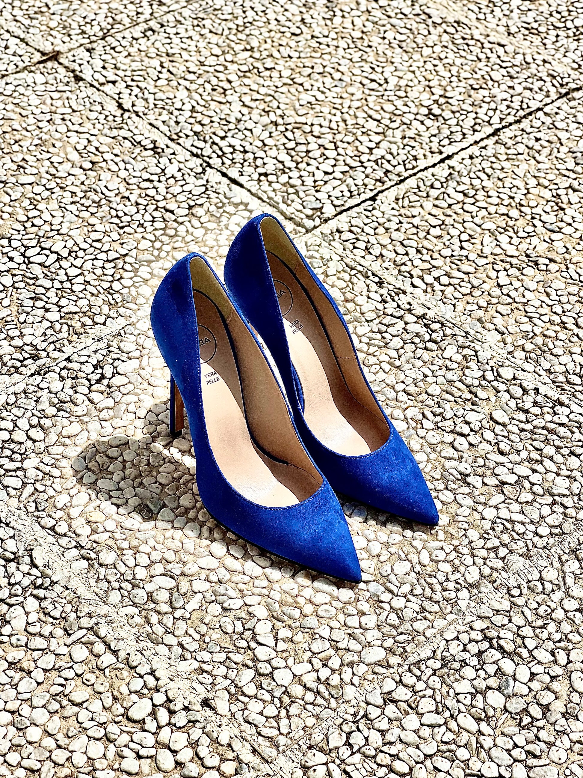 Spitz zulaufende Pumps aus Wildleder mit Stilettoabsatz.