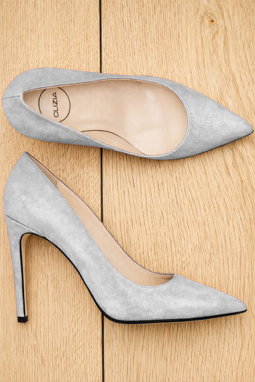 Pumps mit hoher, spitzer Zehenpartie und schmalem Absatz.
