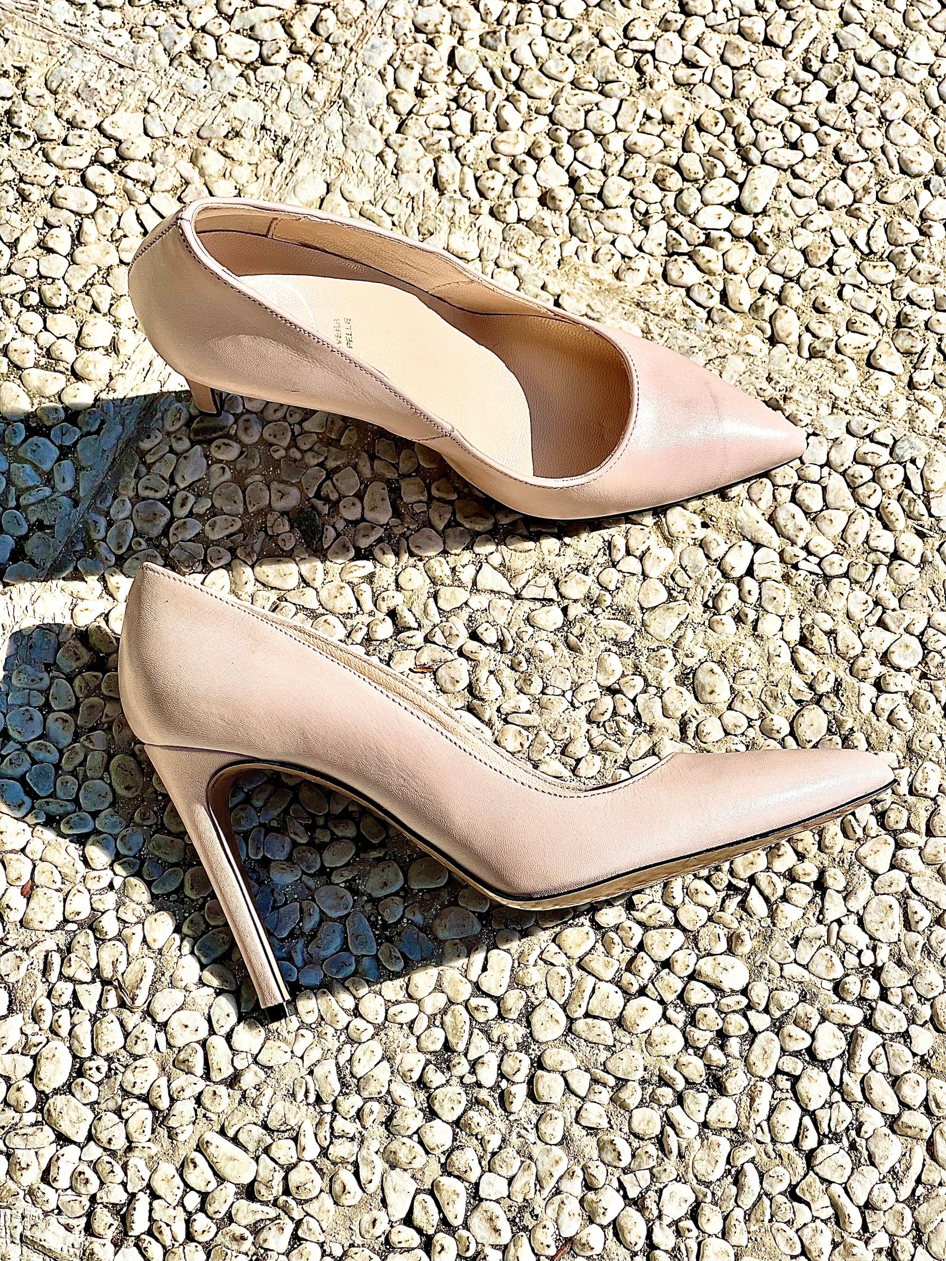 Spitz zulaufende Stiletto-Pumps aus Leder.