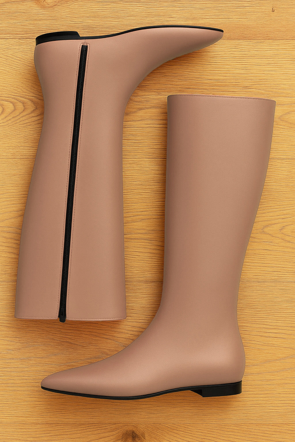 Niedrige Stiefel mit flacher Spitze und 1 cm Absatz.