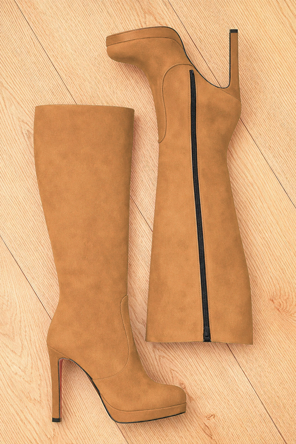 Elegante hohe Stiefel mit runder Zehe und Plateau.