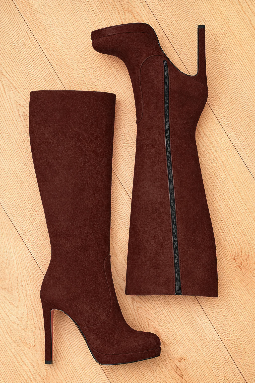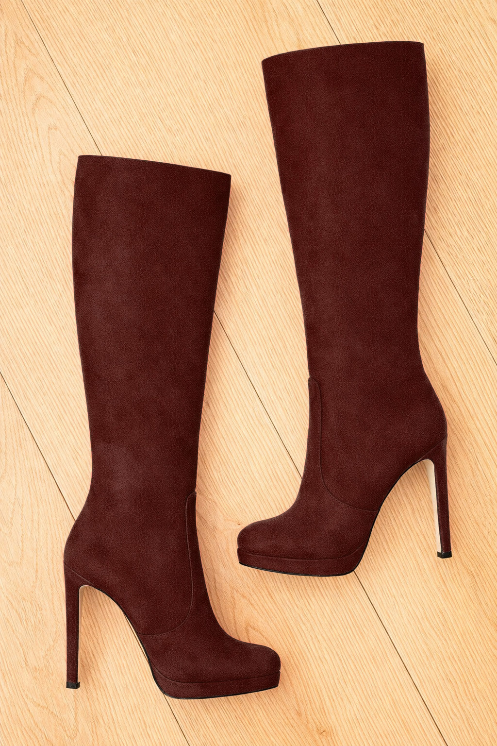 Elegante hohe Stiefel mit runder Zehe und Plateau.