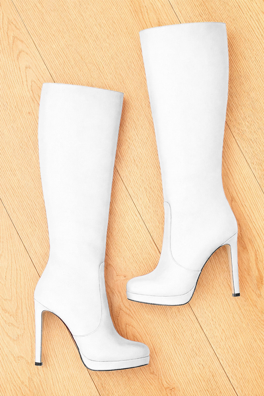 Elegante hohe Stiefel mit runder Spitze und schmalem Absatz.
