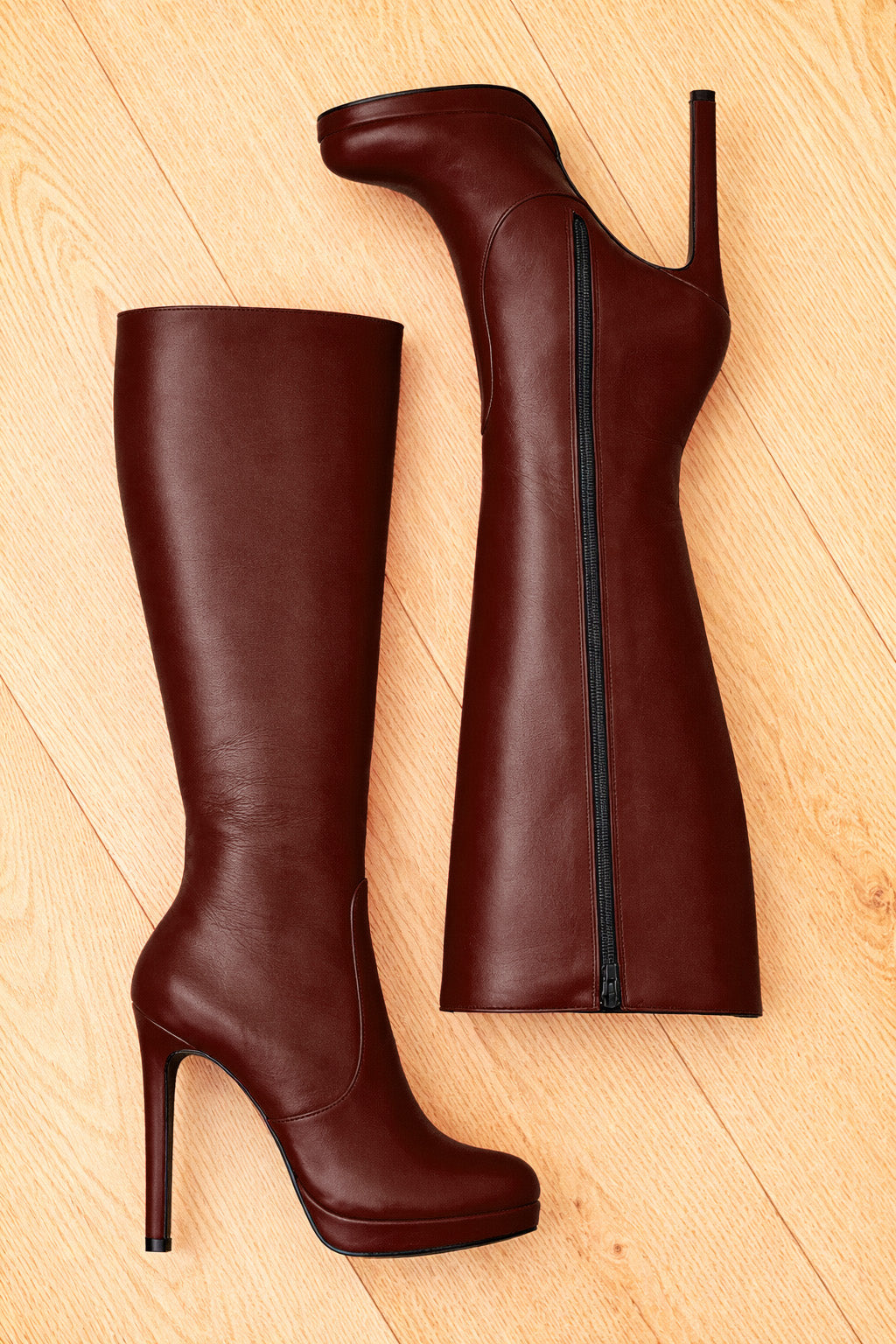 Elegante hohe Stiefel mit runder Spitze und schmalem Absatz.