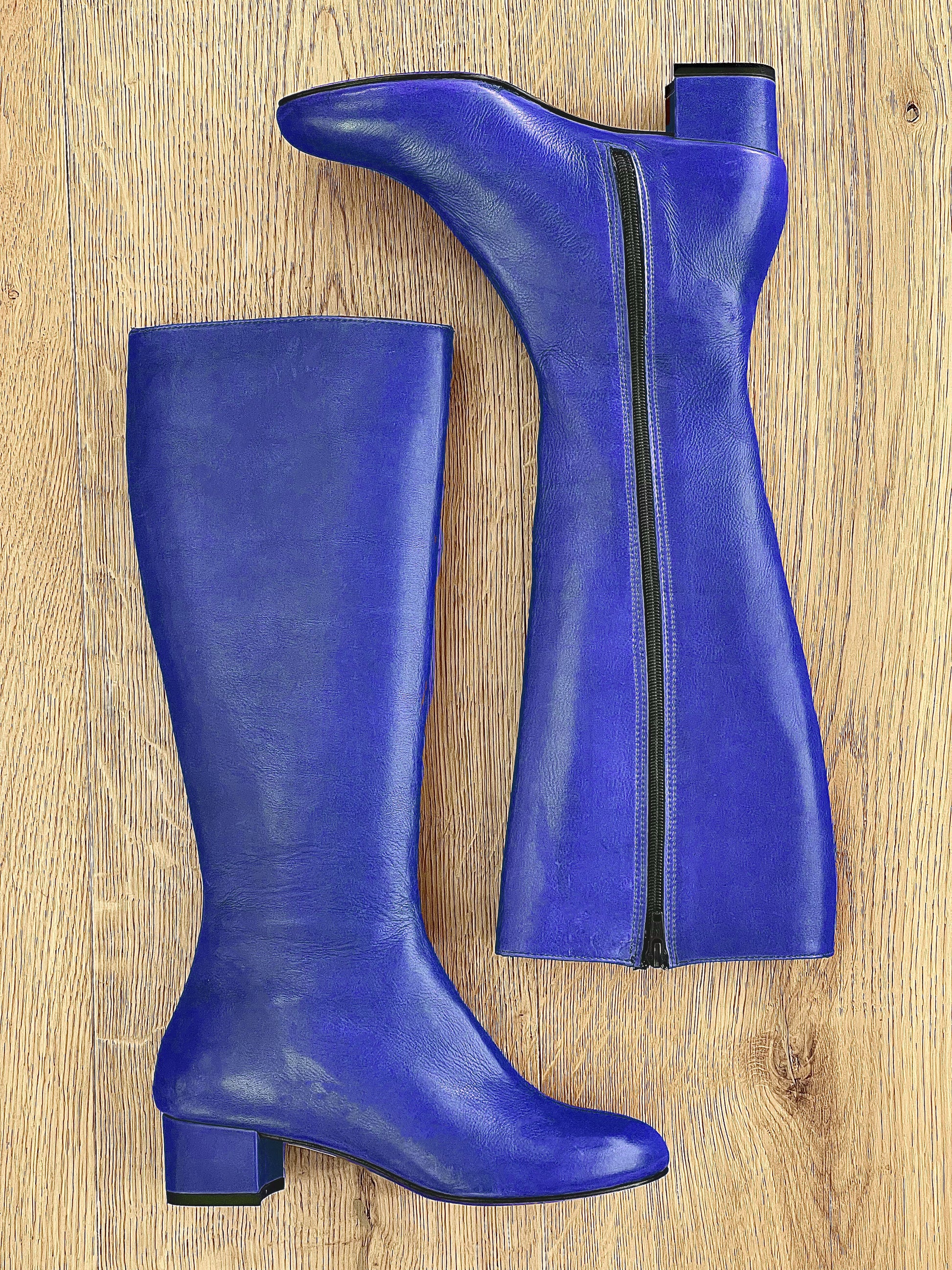 Stiefel aus Leder mit breitem Absatz und runder Spitze.