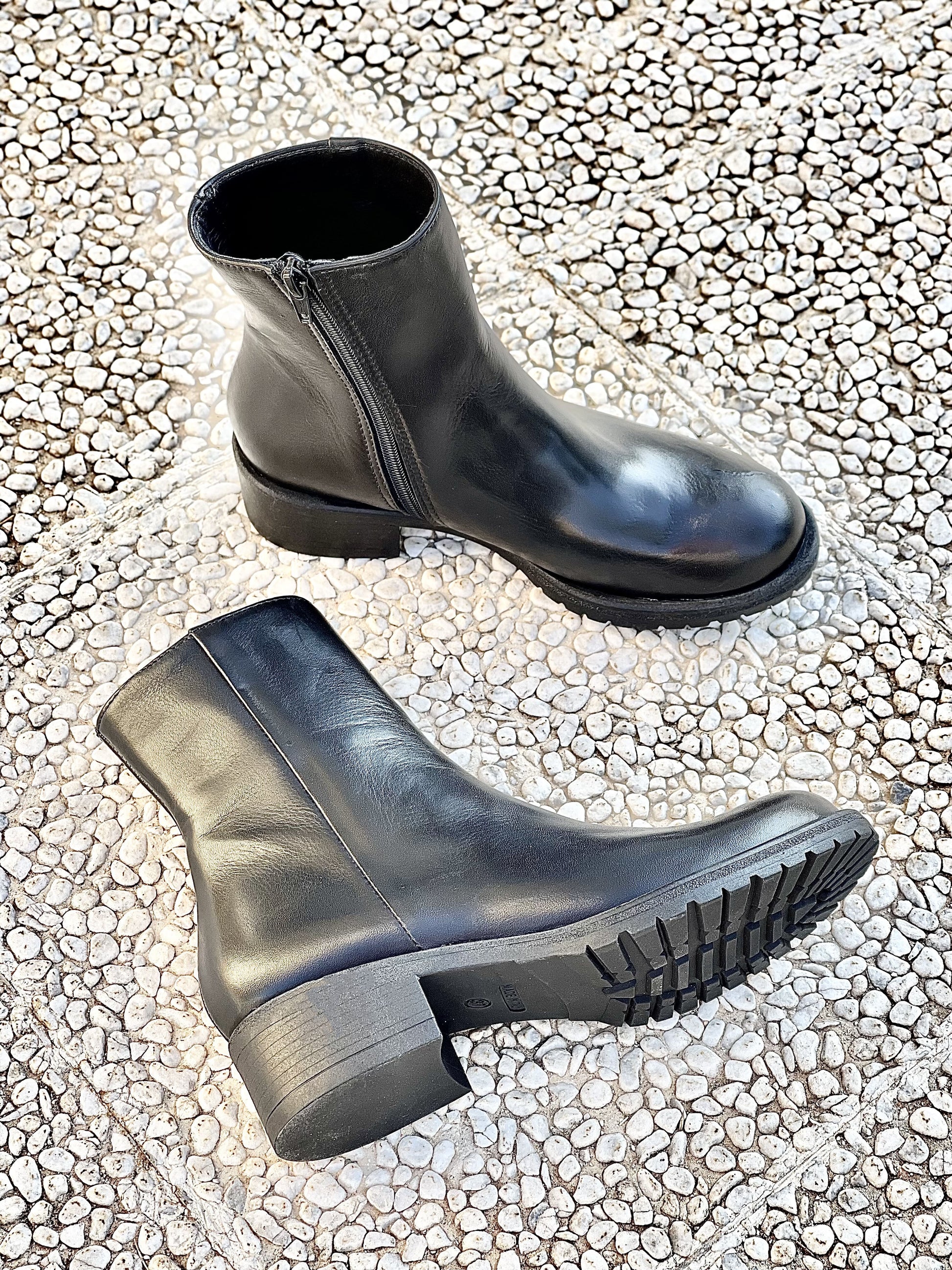 Knöchelhohe Lederstiefel mit Gummiboden, Absatz 3 cm. und internem Reißverschluss.