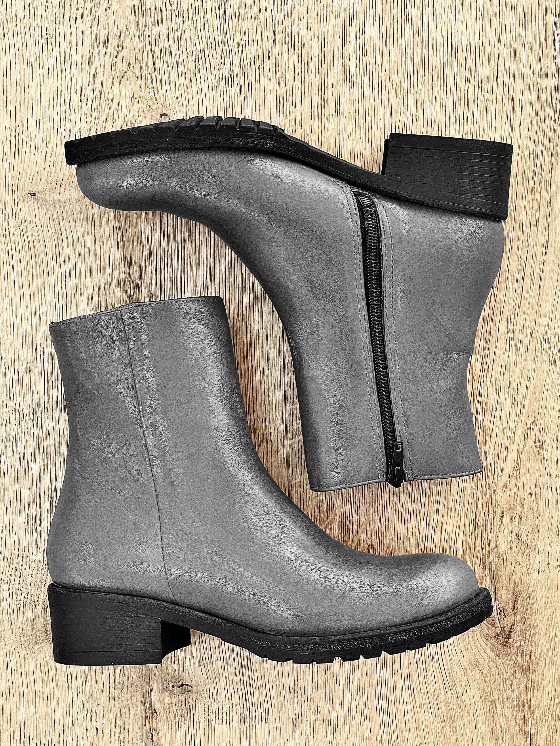 Niedrige Lederstiefel mit runder Spitze und Gummiboden.