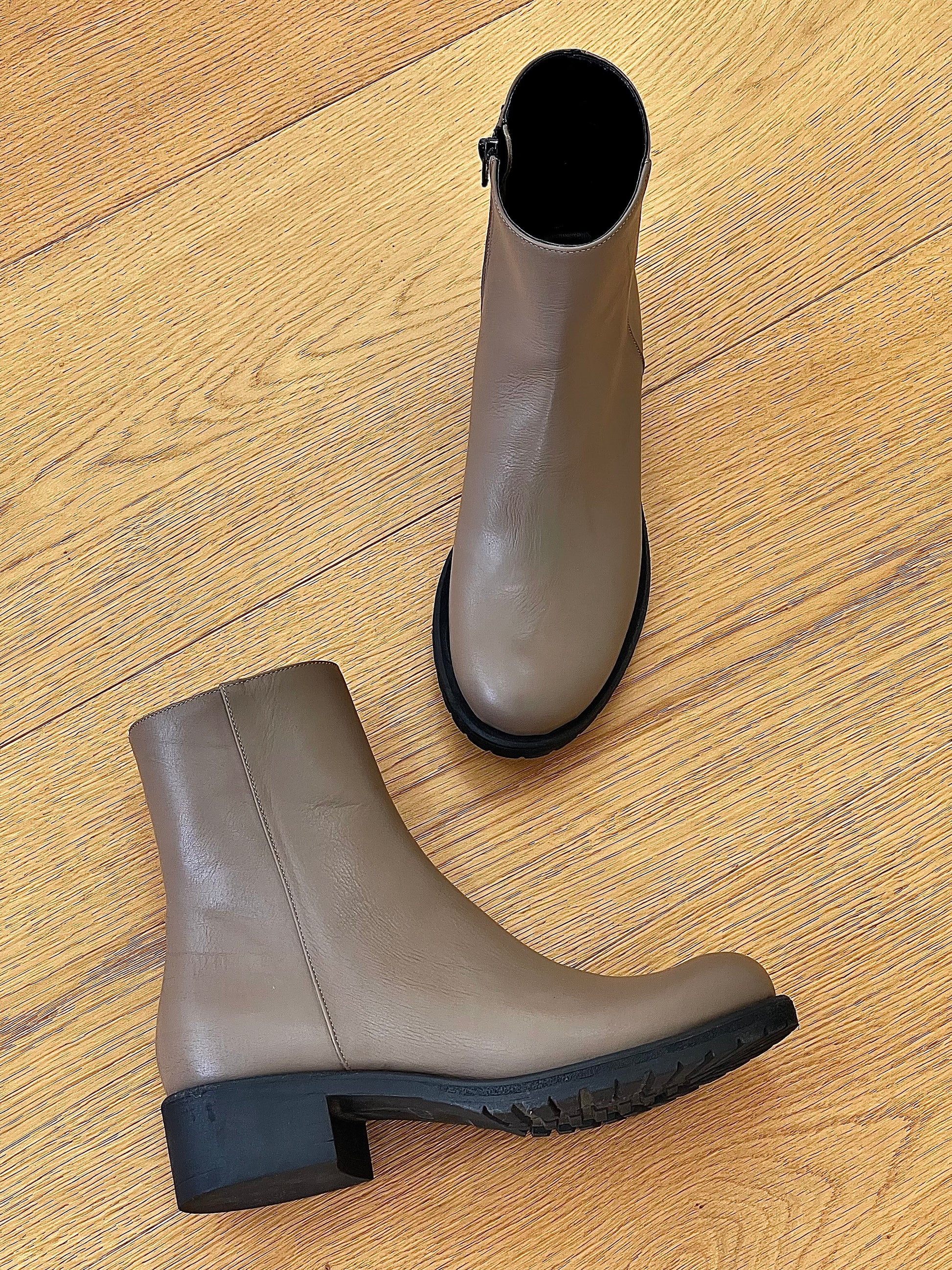Knöchelhohe Lederstiefel mit Gummiboden, Absatz 3 cm. und internem Reißverschluss.